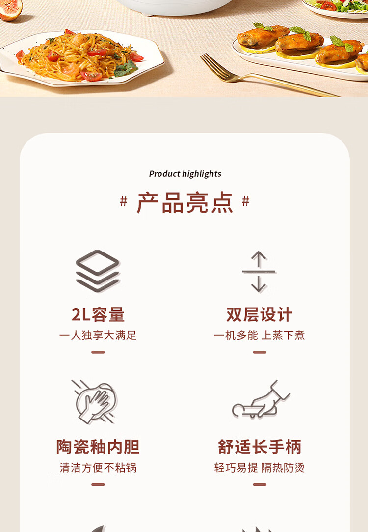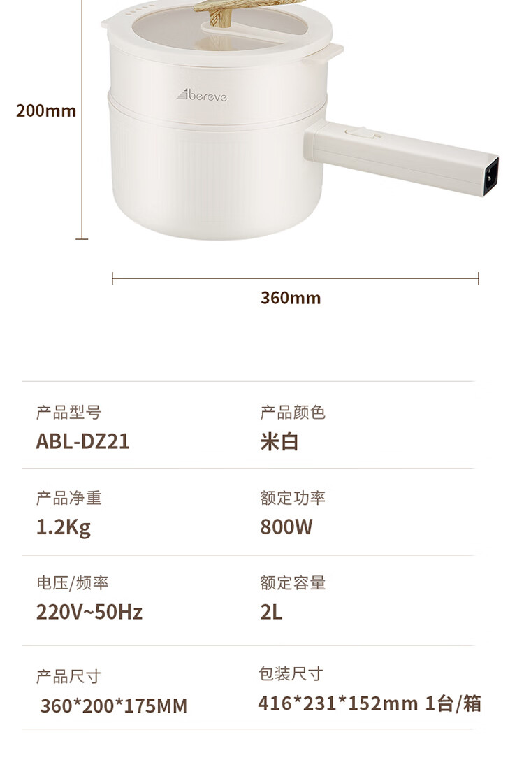 【小家电】Abereve 电煮锅(带蒸笼)ABL-DZ21 HF
