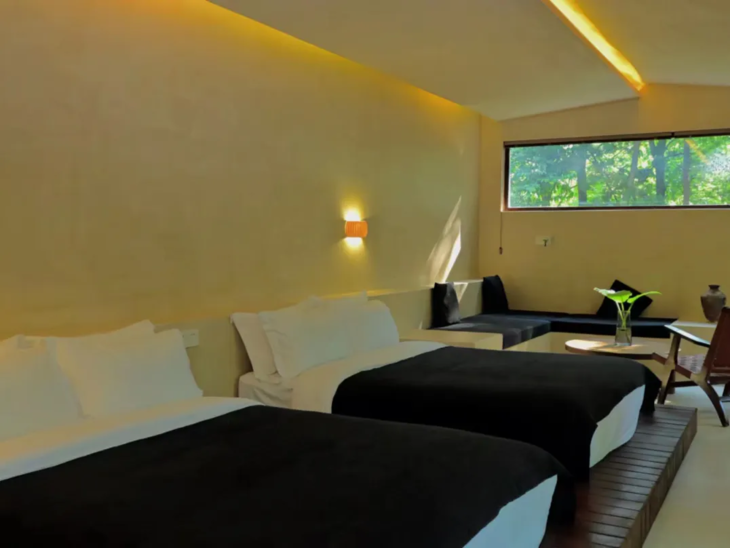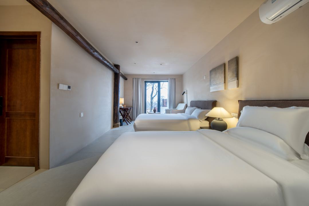 (3)【袋鼠爸爸同款】桃花源·私汤双床套房:78-88㎡(此面积包含庭院/露台),2张1.5米床(可拼)