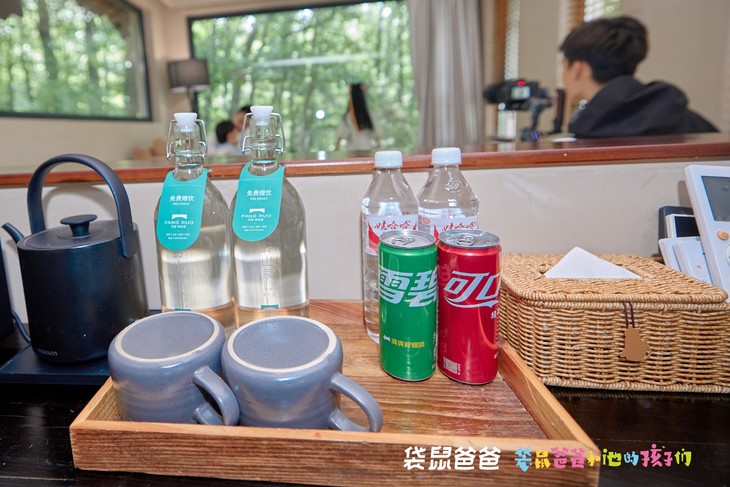 房间里提供了两瓶矿泉水和两瓶山泉水(瓶子不可以带走哦~),山泉水为民宿周边水源地水,一定烹茶煮沸饮用,不可生饮。
