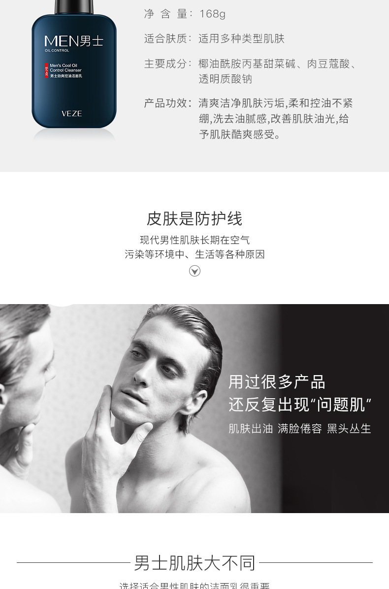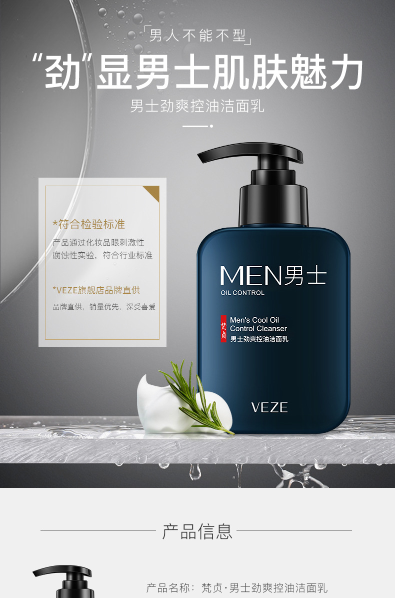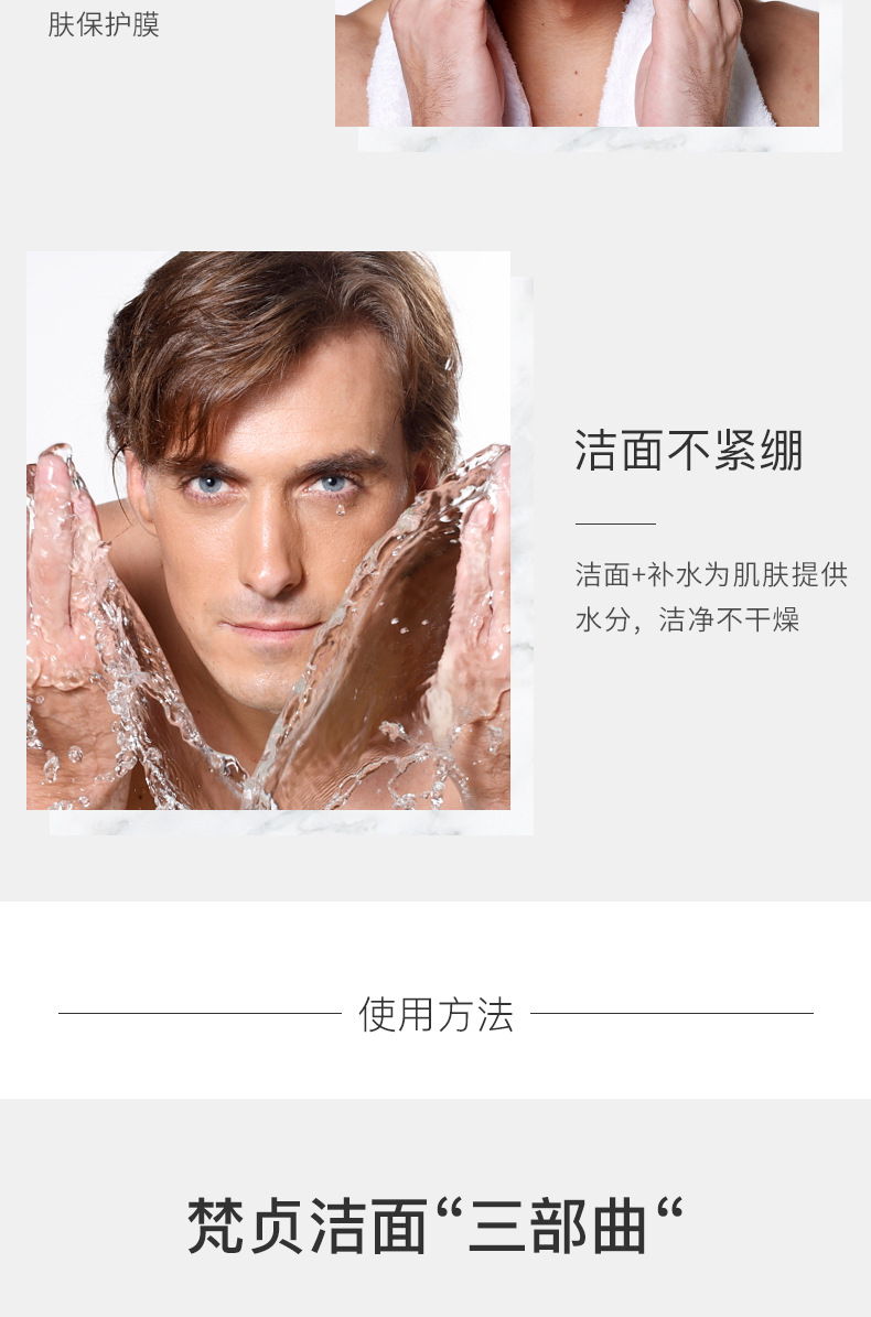 梵贞男士洗面奶补水保湿深层清洁收缩毛孔洁面乳学生护肤品