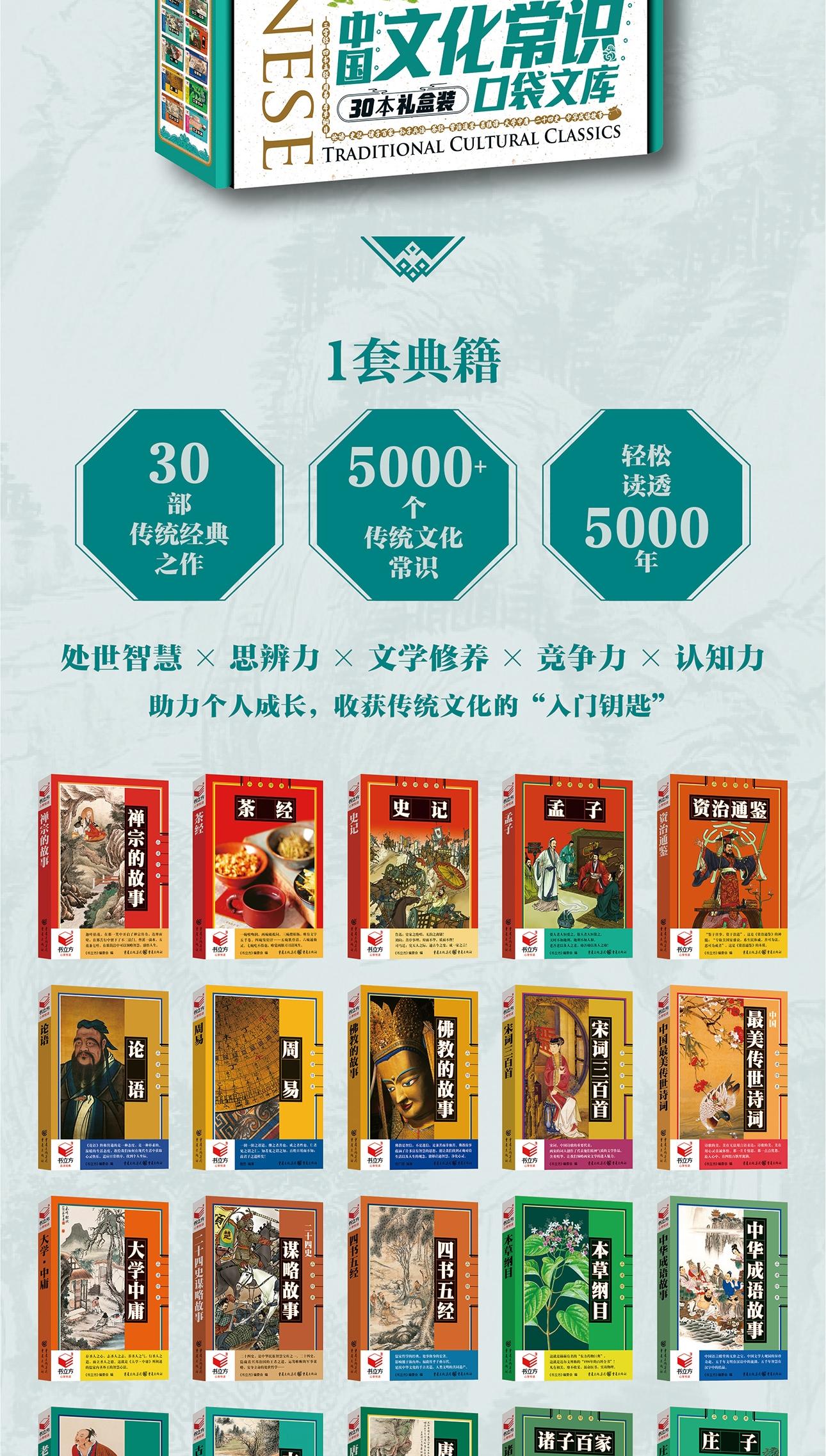《中国文化常识口袋文库》礼盒装 全30册 10岁+ 30部传统经典之作 5000+个传统文化常识 轻松读透5000年 助力个人成长,收获传统文化的“入门钥匙”
