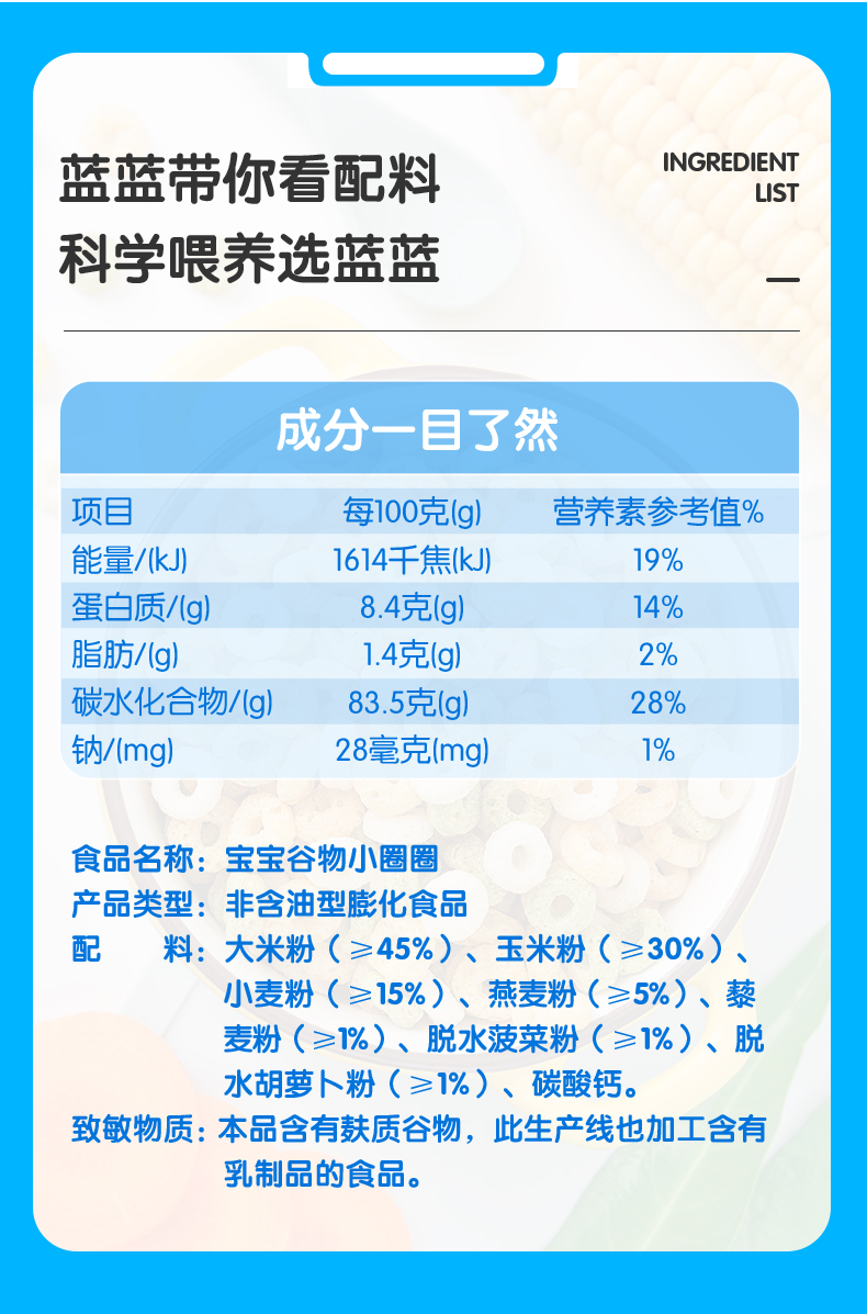 小鹿蓝蓝 膨化_宝宝谷物小圈圈/混合谷物/64g
