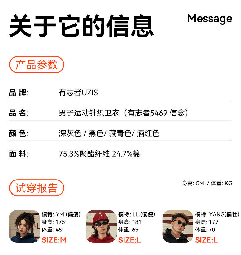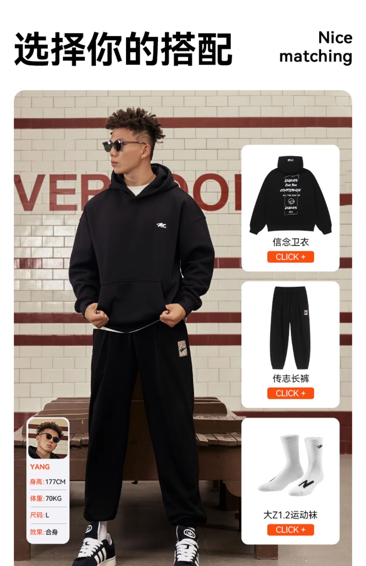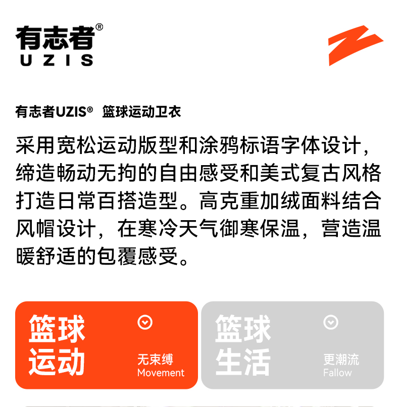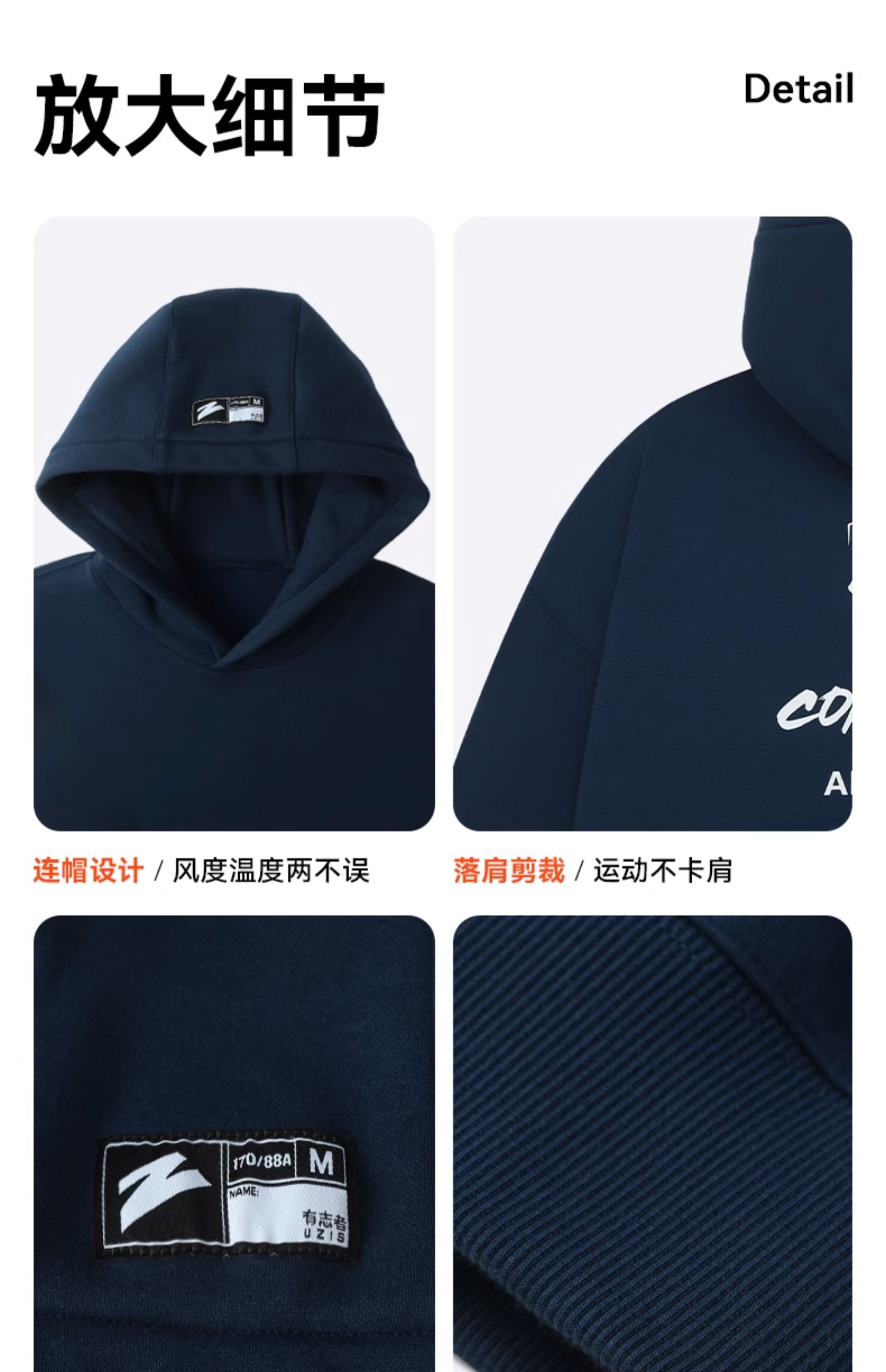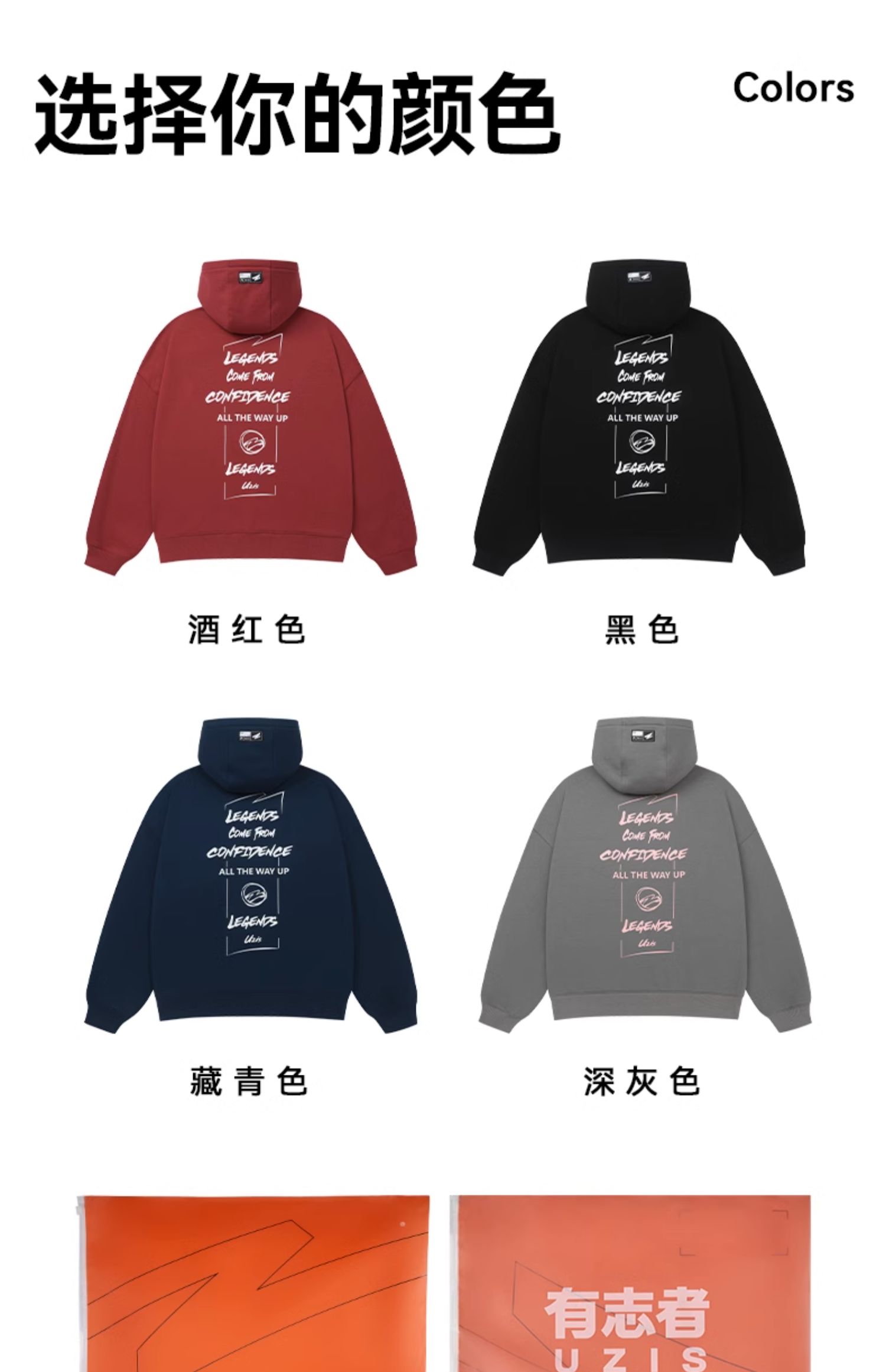 有志者UZIS美式复古运动卫衣男秋冬保暖休闲时尚连帽套头上衣信念