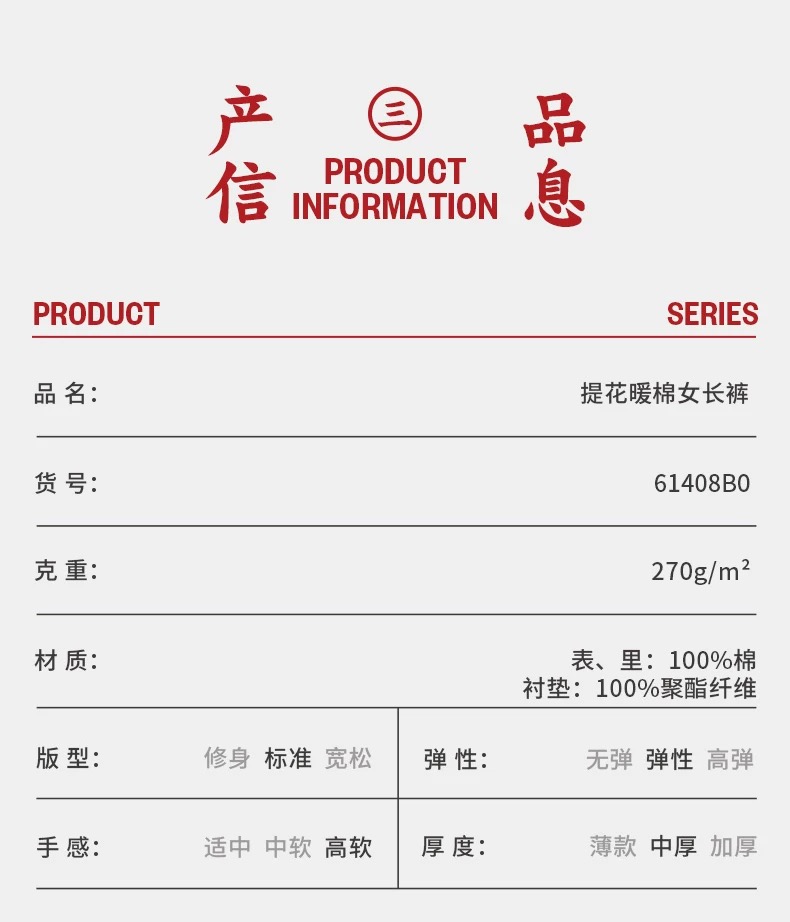 Threegun三枪 提花暖棉女士长裤-61408B011