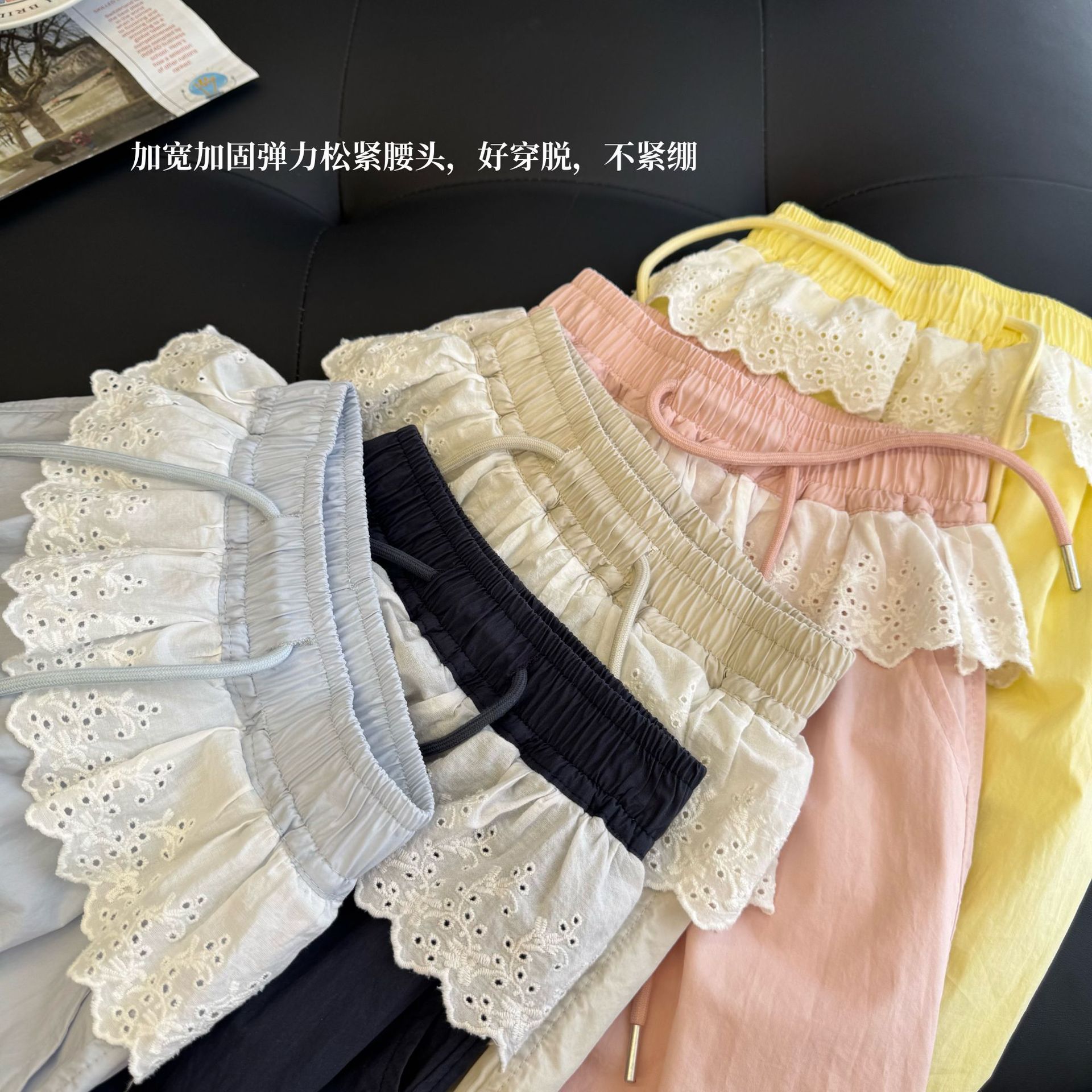 【儿童服饰丨吾家儿童花边阔腿裤】面料丝滑柔顺,做工精细平整,腰围舒适不紧绷,立体花边腰饰让穿搭更甜美,整体轻薄舒适,多种颜色可选