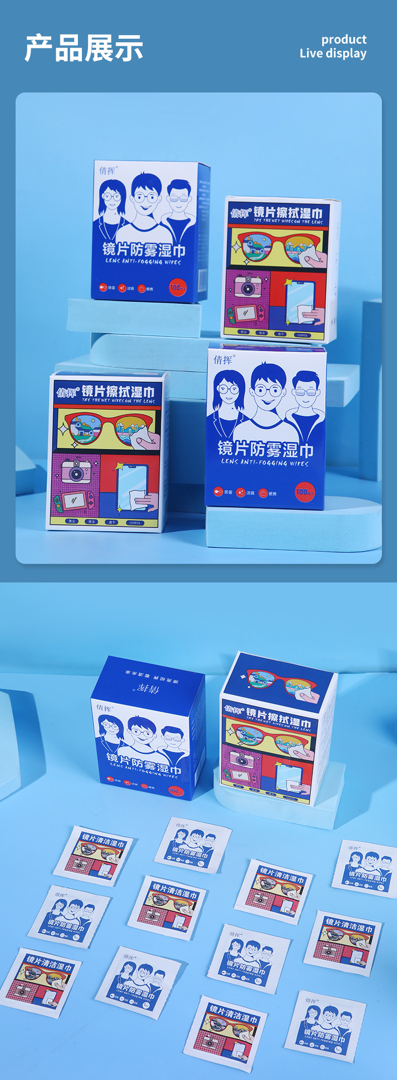 镜片防雾擦拭湿巾眼镜防雾湿巾近视眼镜防雾清洁镜片防起雾湿巾学生专用办公室专用