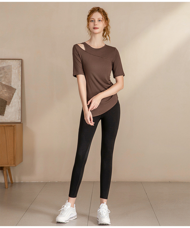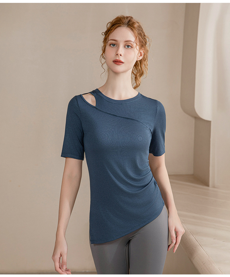 瑜伽服女夏季新款修身显瘦短袖T恤透气运动户外健身服上衣运动