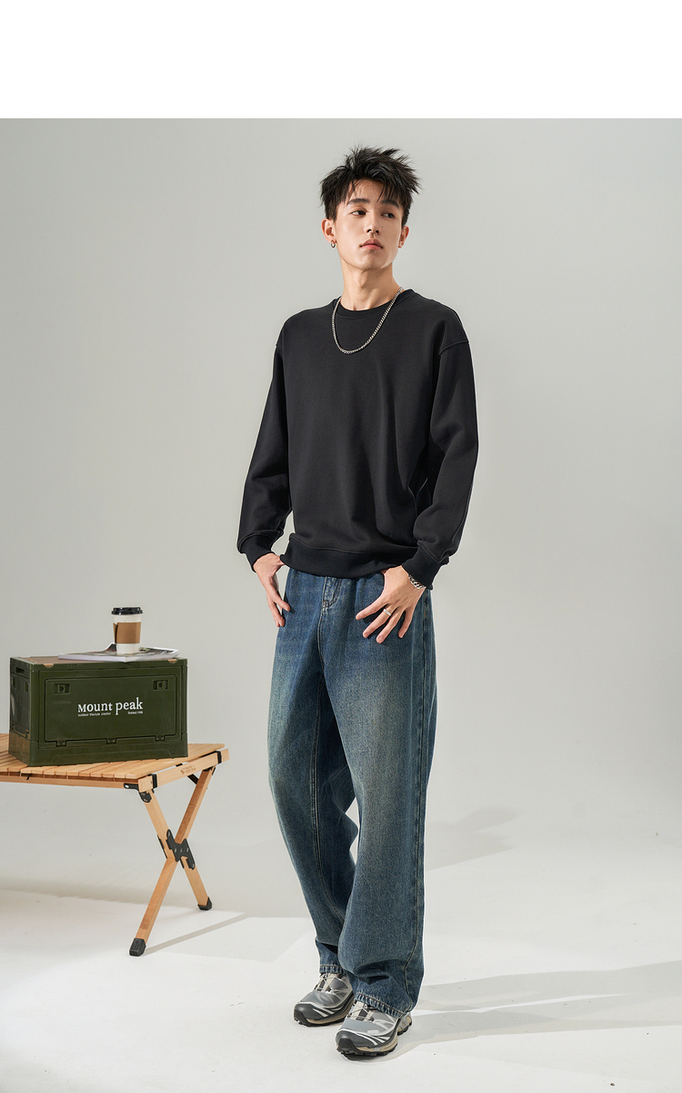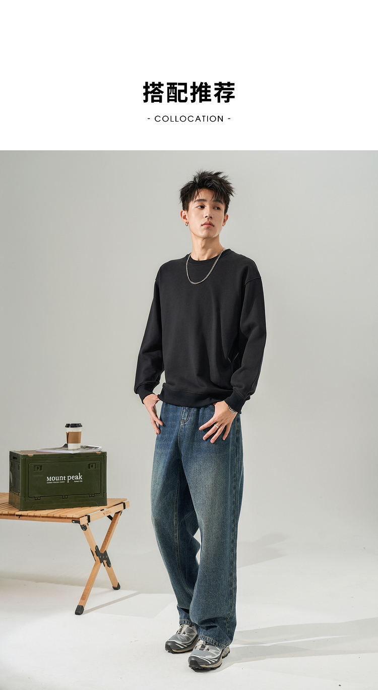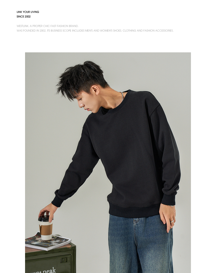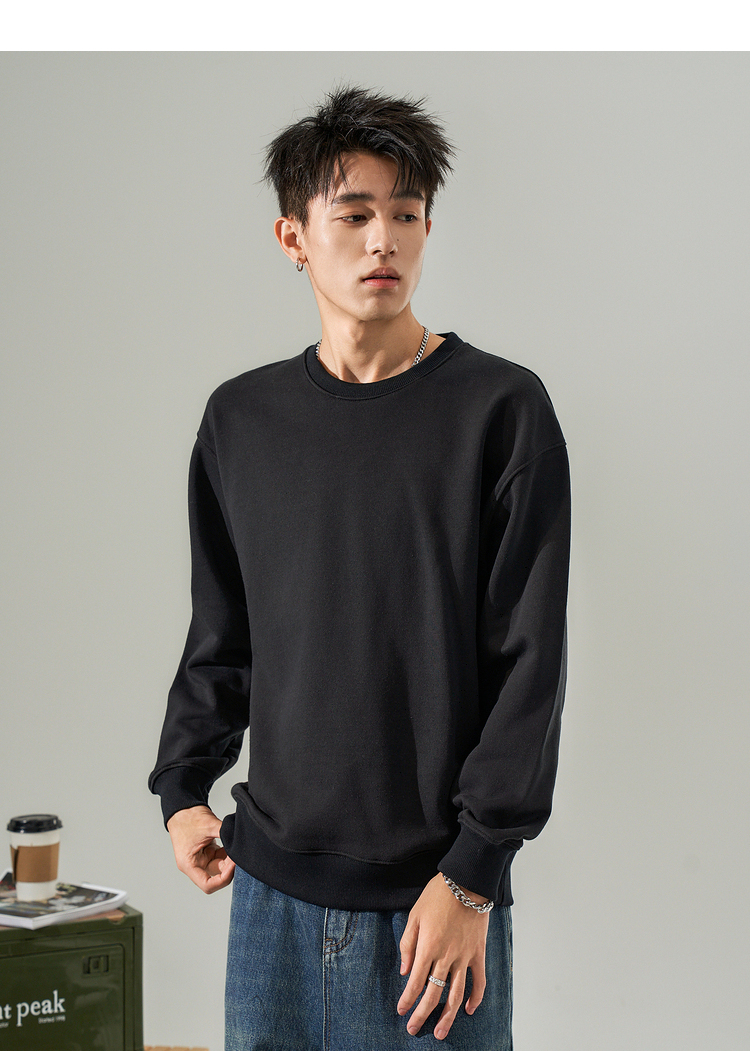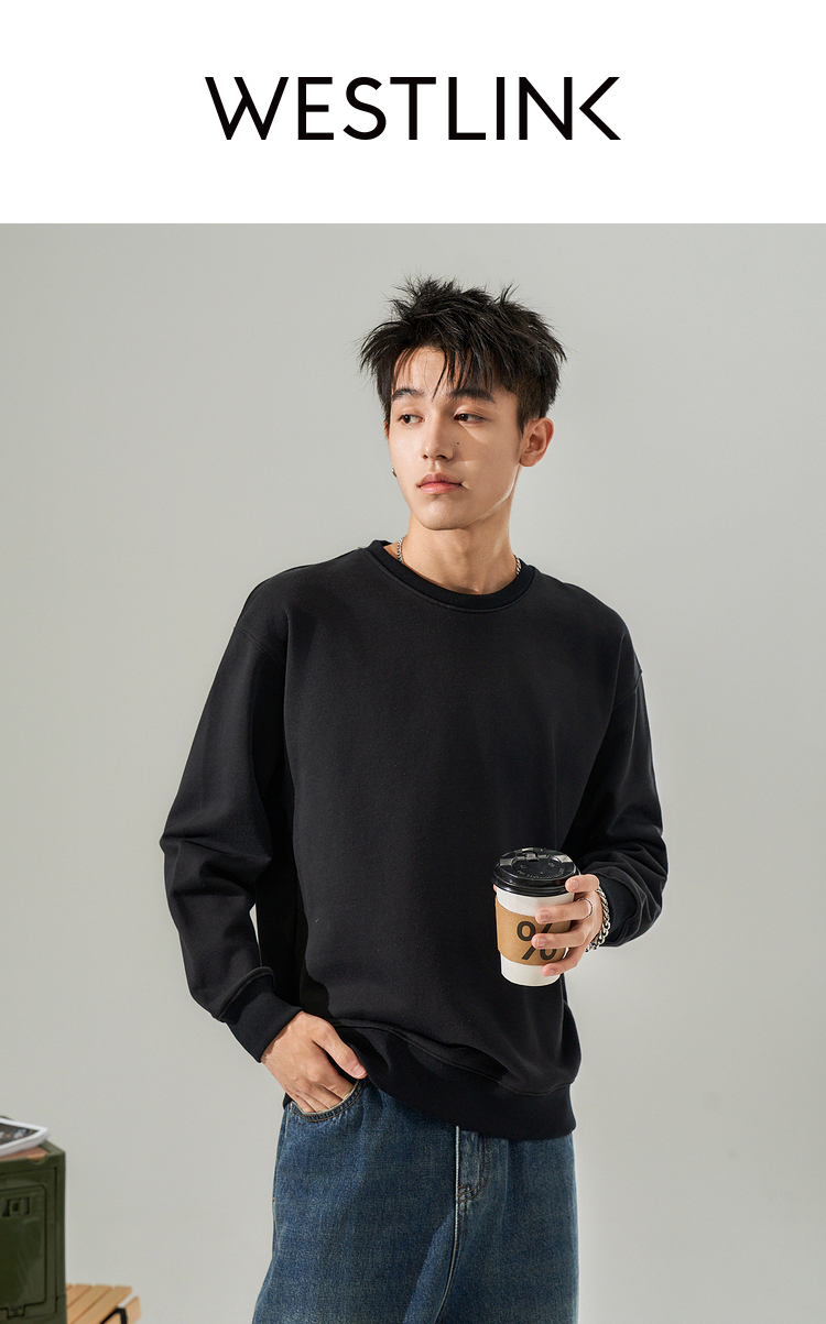西遇韩版纯色圆领卫衣男新款休闲简约套头百搭长袖上衣10032387