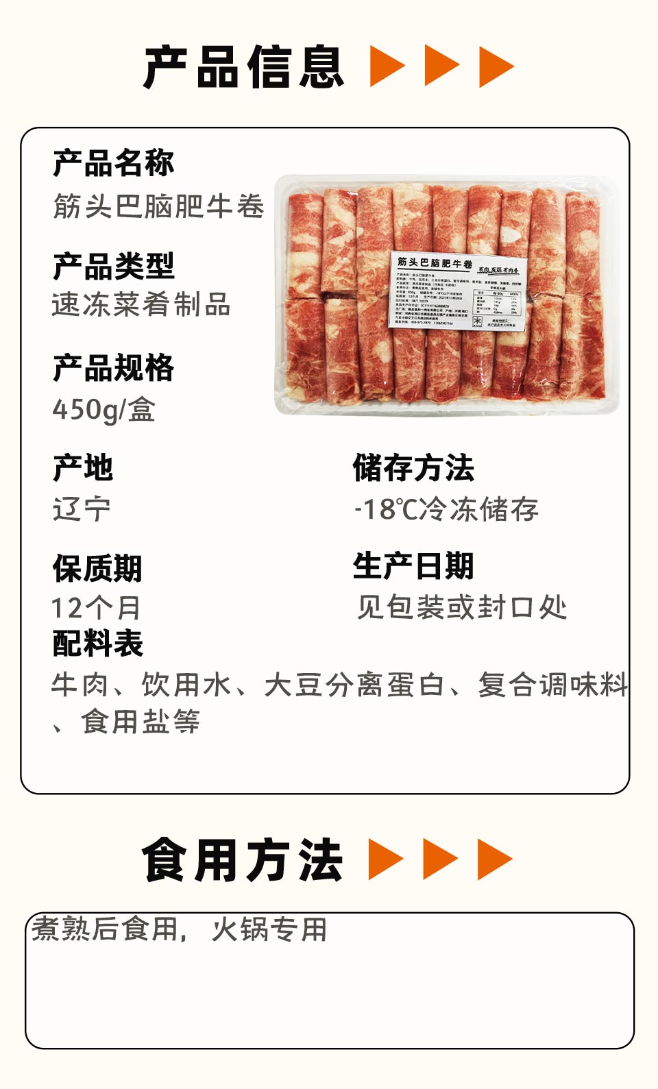 【会员专享】筋头巴脑肥牛卷 450g/盒