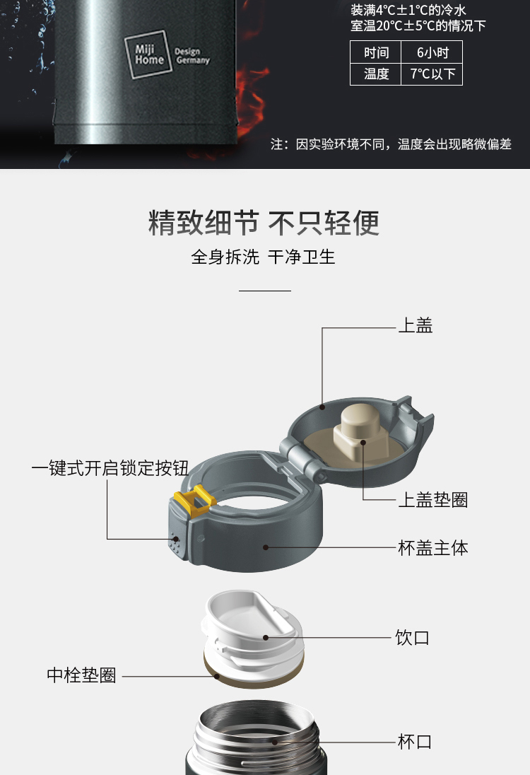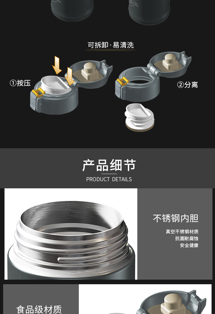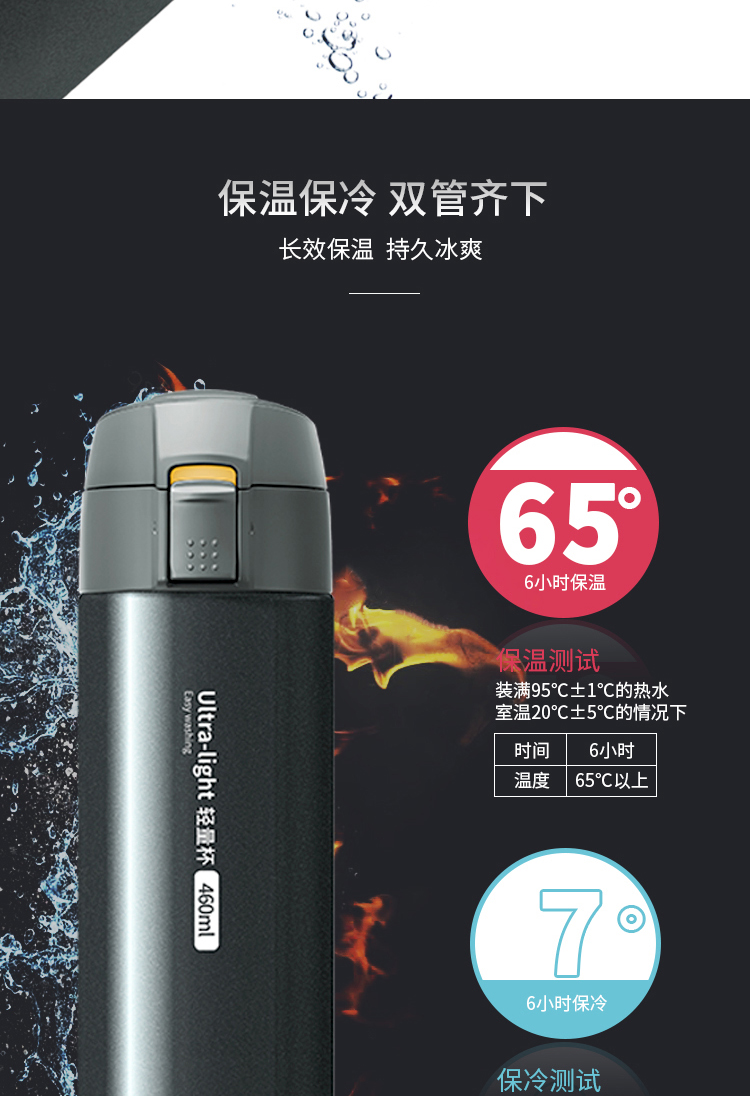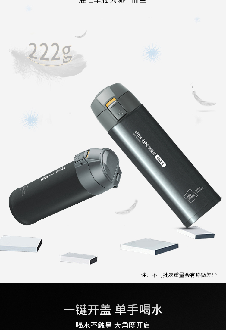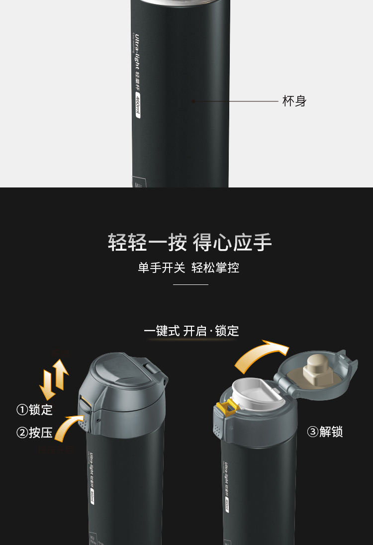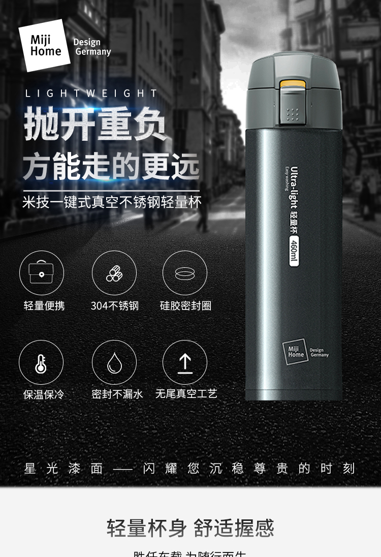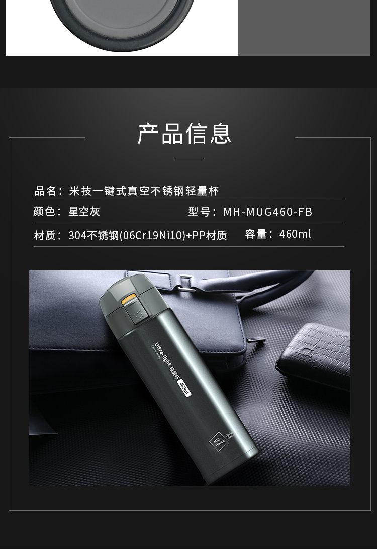 米技 一键式真空不锈钢轻量杯 460ml 星空灰 商品图4