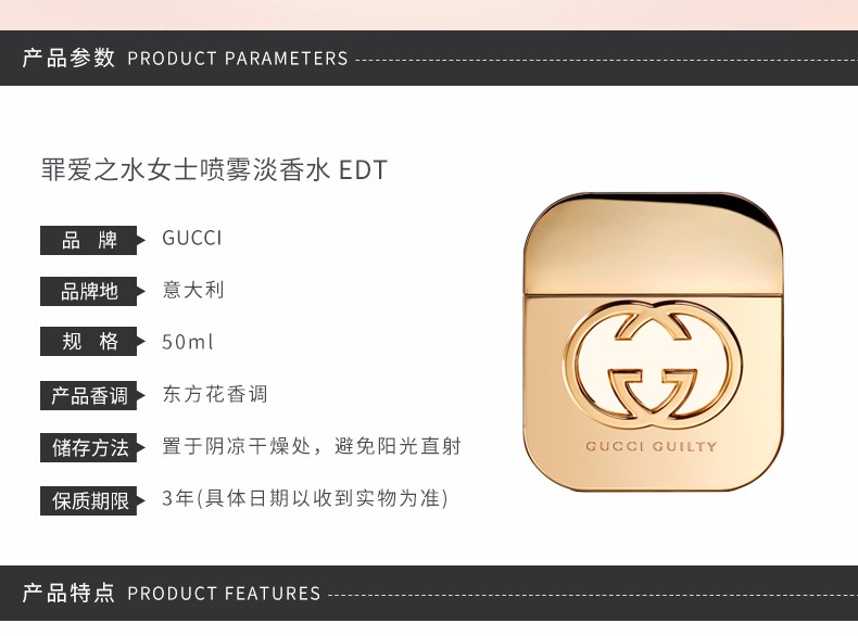 GUCCI古驰 罪爱之水女士喷雾淡香水 EDT 50ML 意大利