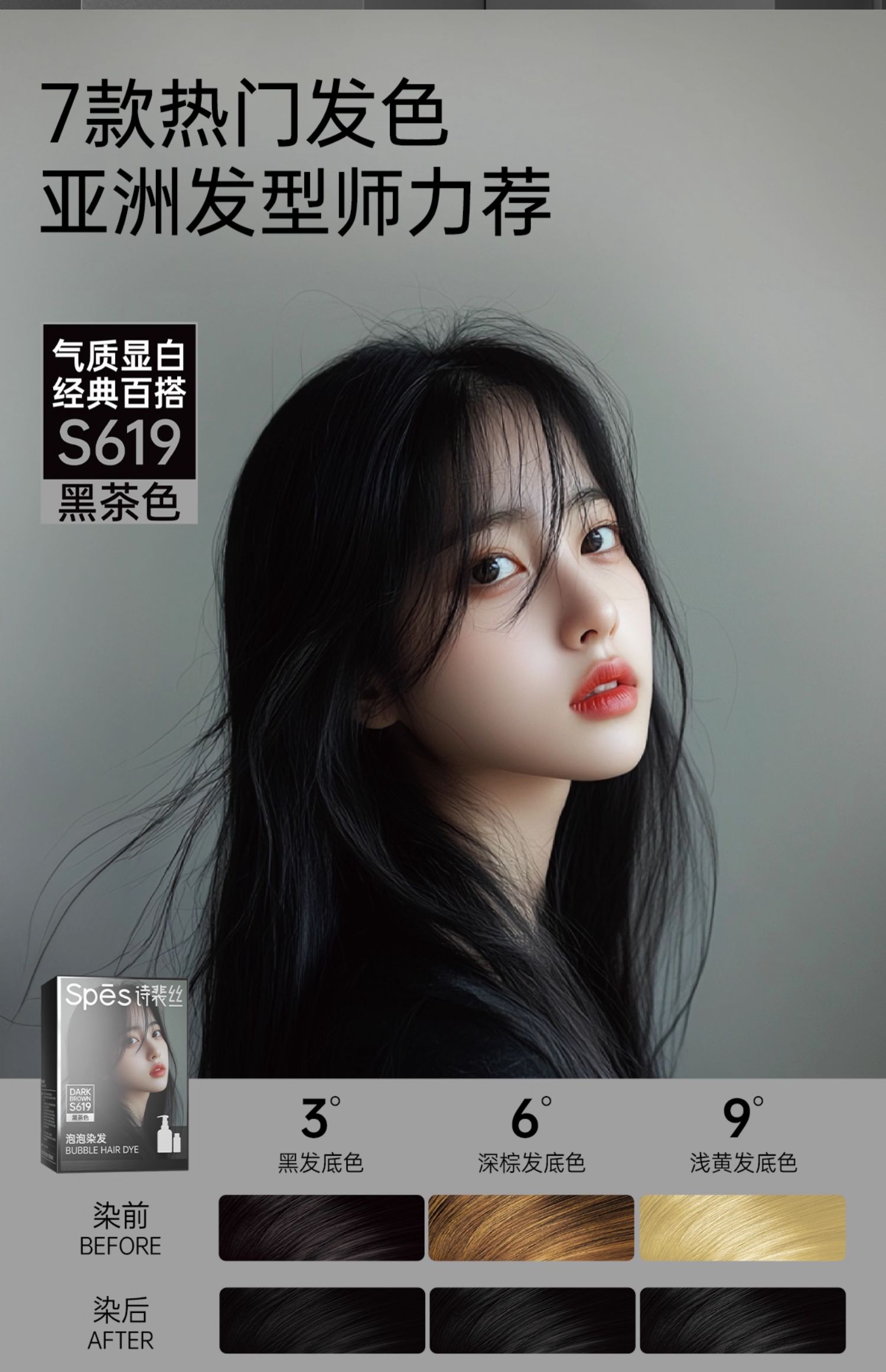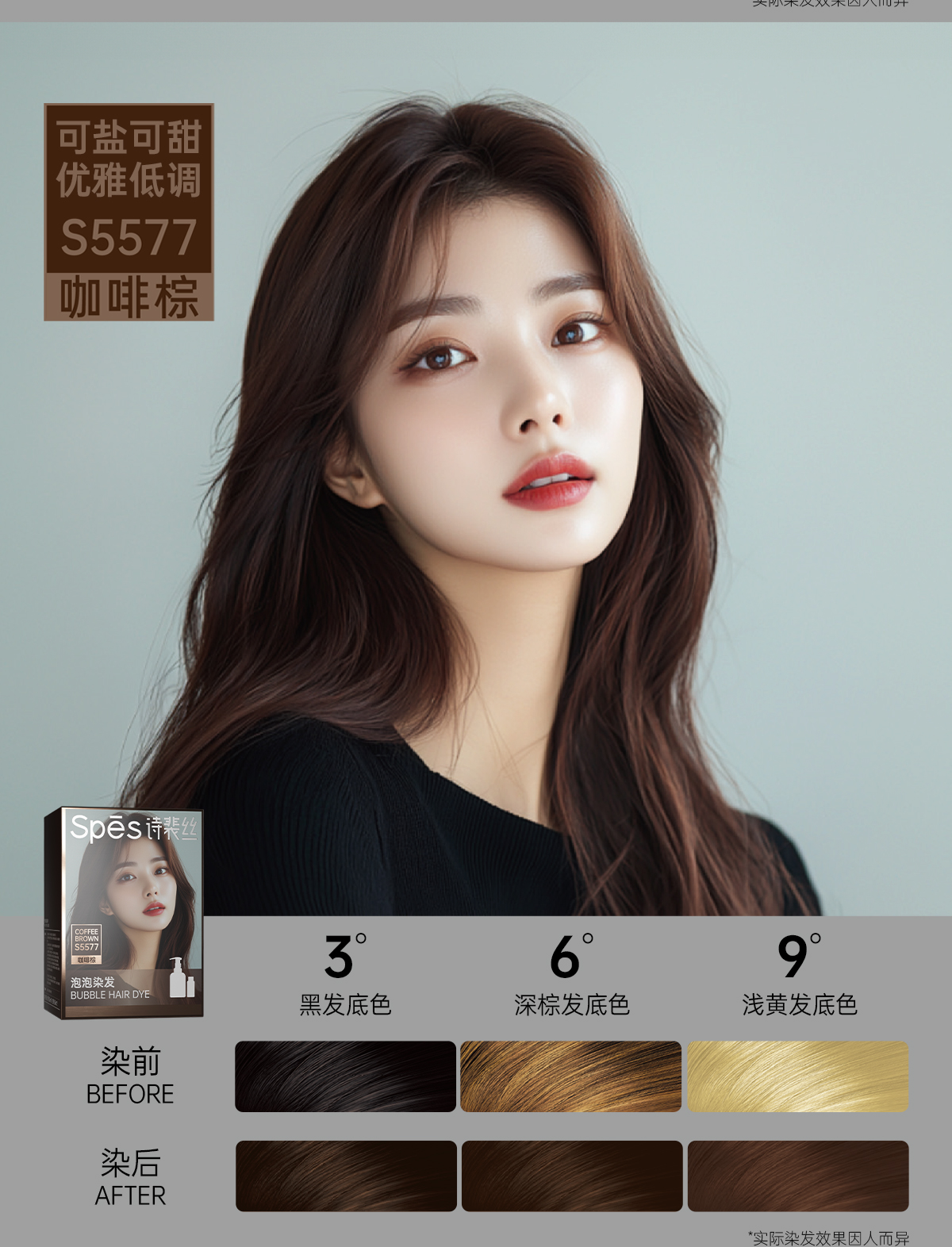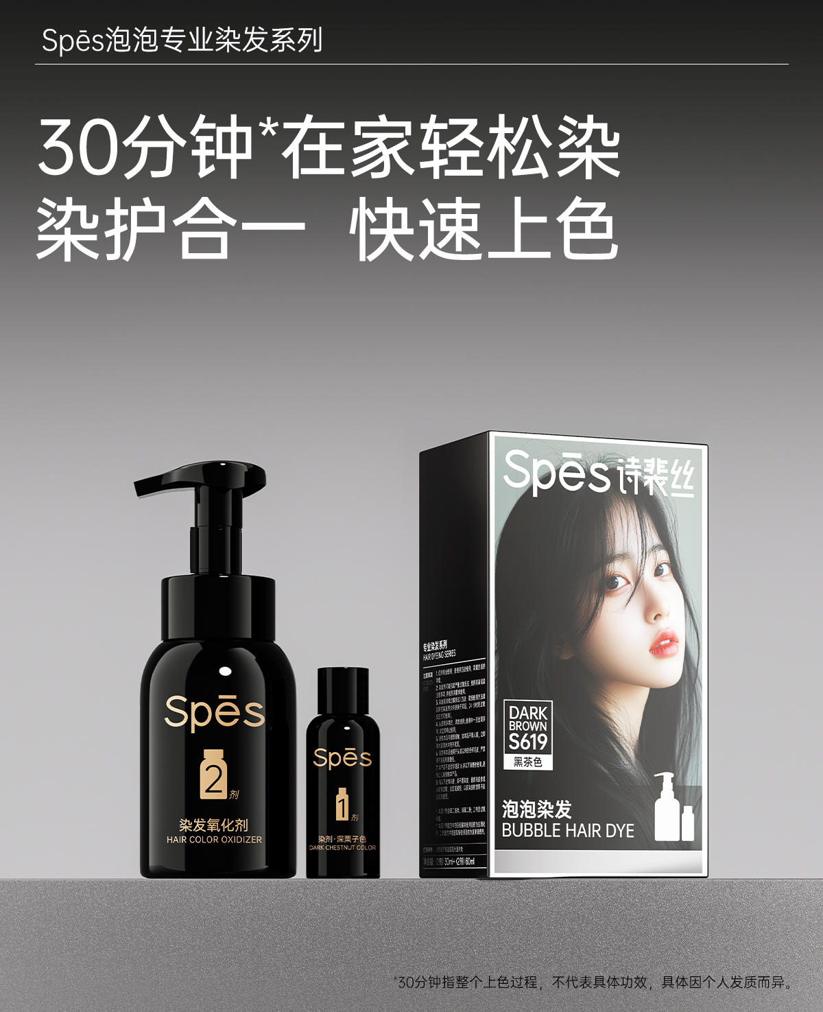 【加10元得双支装】SPES诗裴丝泡泡染发剂 流行黑茶色/亚麻金棕 7款热门发色轻松植萃染发