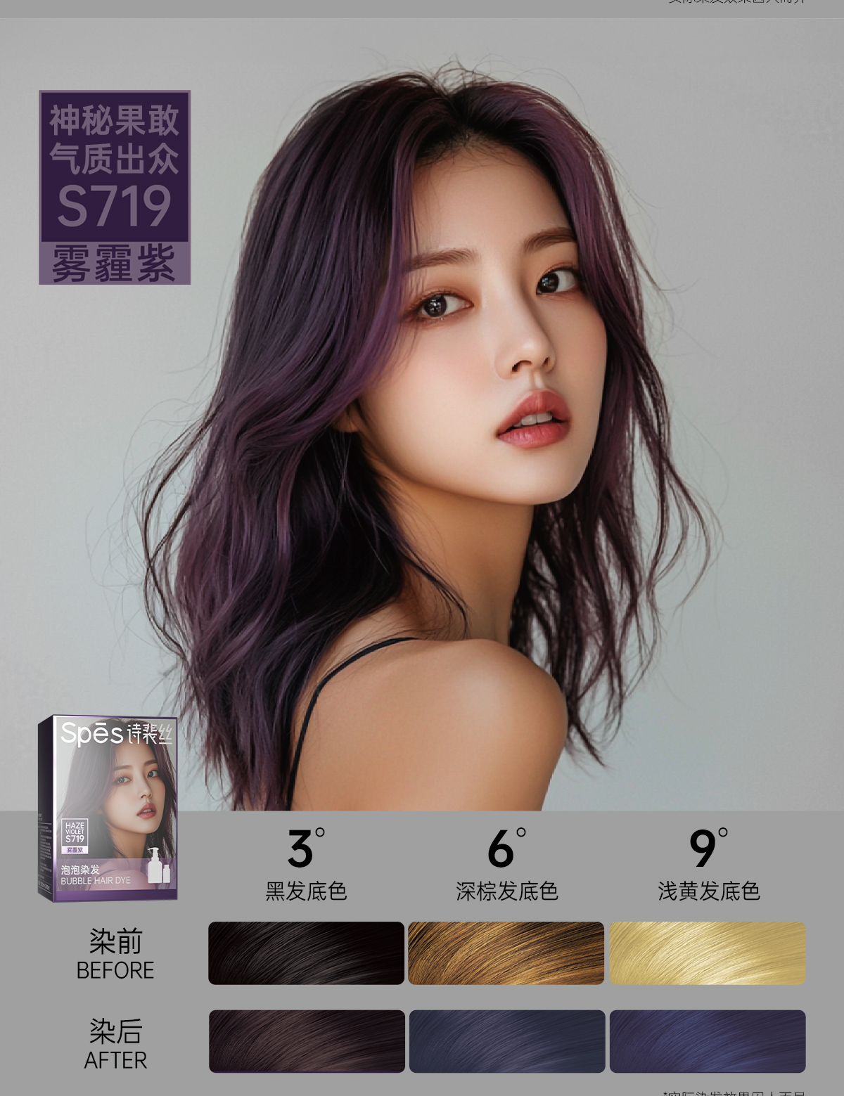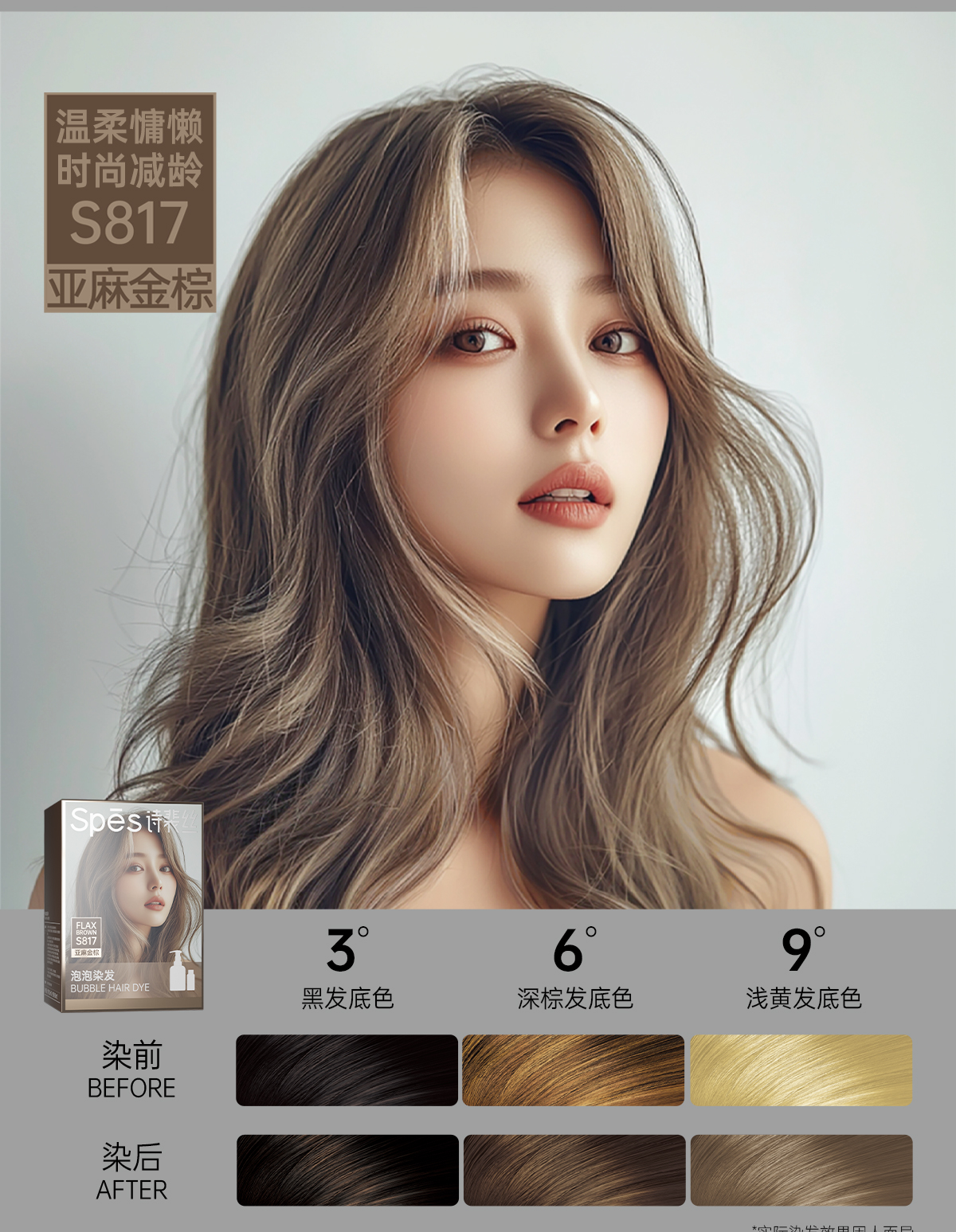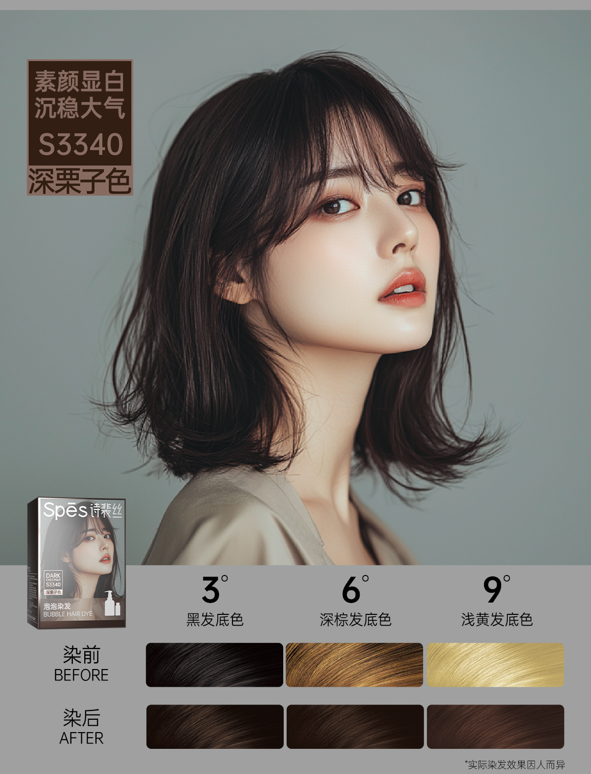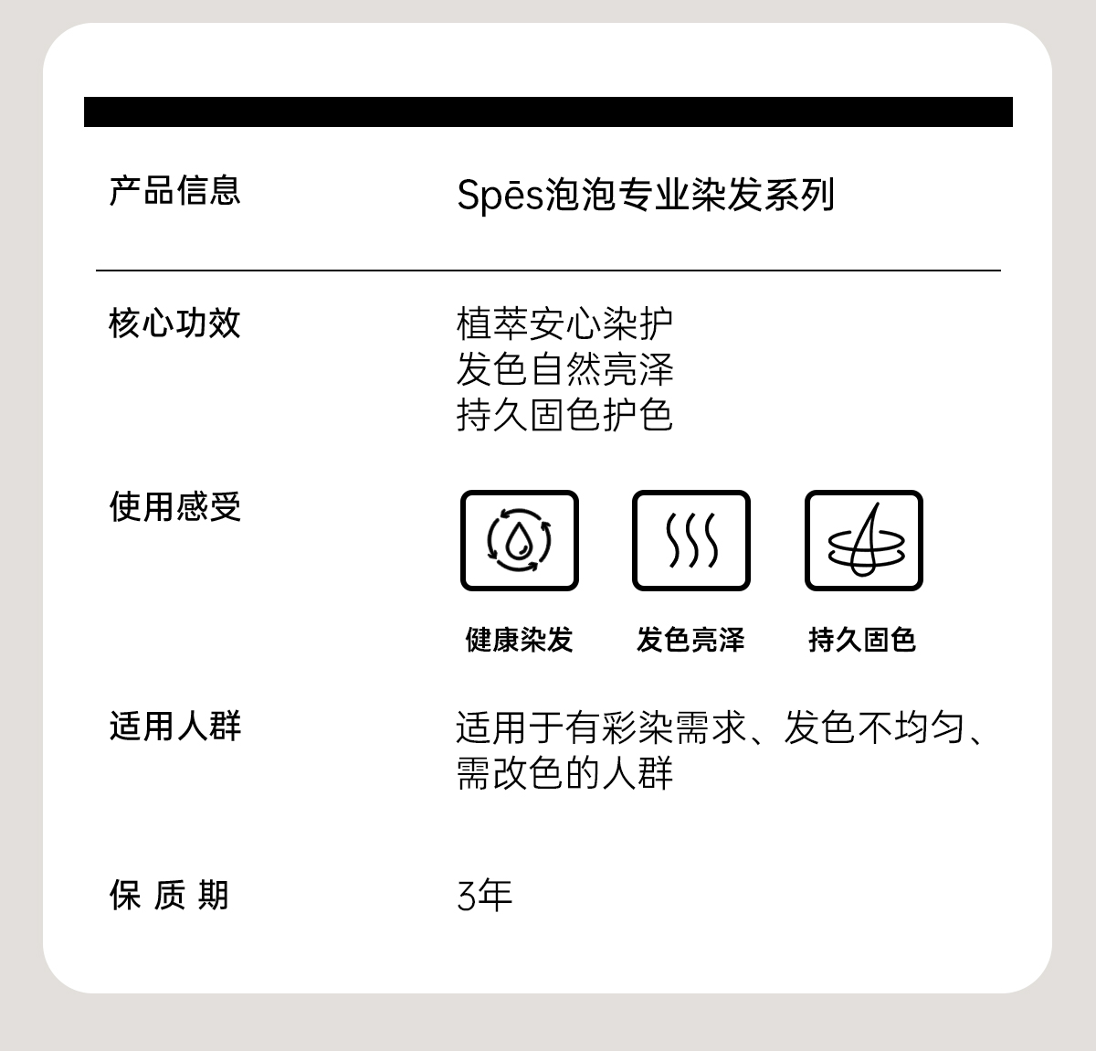 【加10元得双支装】SPES诗裴丝泡泡染发剂 流行黑茶色/亚麻金棕 7款热门发色轻松植萃染发