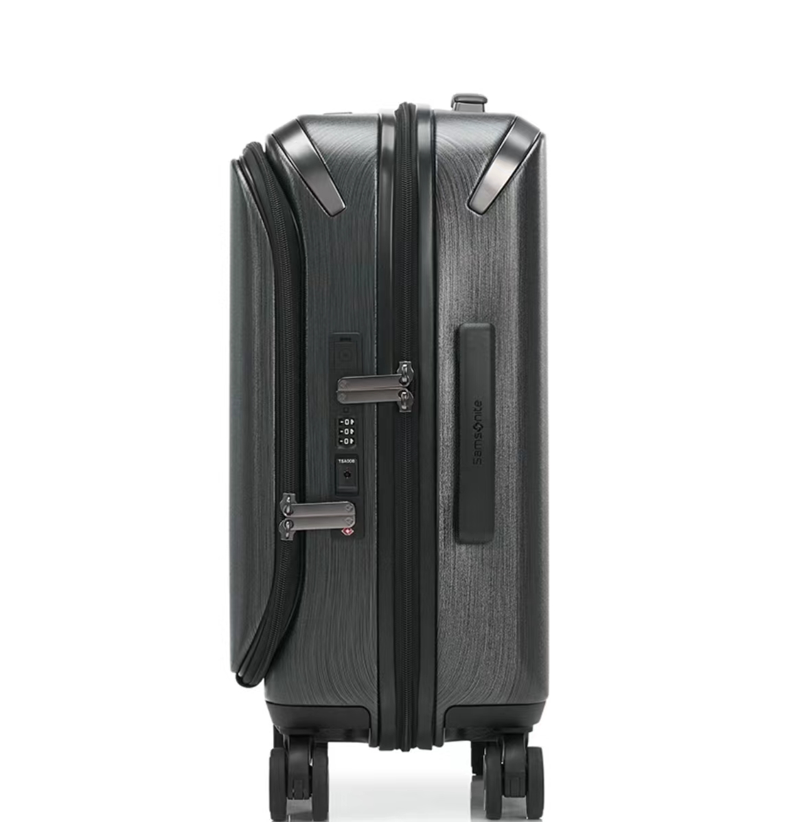 Samsonite/新秀丽2023新品拉杆箱前开口一体深仓缓冲减震轮一键刹车可扩展抗菌内里_登机箱 20英寸_拉丝黑 QO9 19001专为商务差旅设计,金属拉丝纹理,现代又独具风格,荣获红点设计大奖。尺寸:375*550*250(MM)重量:4.32kg 容量:37L