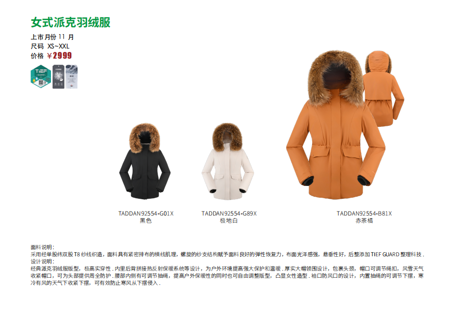 探路者女式派克羽绒服TADDAN92554