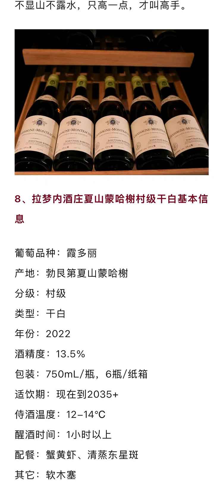 【干白里的康帝】法国勃艮第2022年拉梦内酒庄夏山蒙哈榭村级霞多丽干白