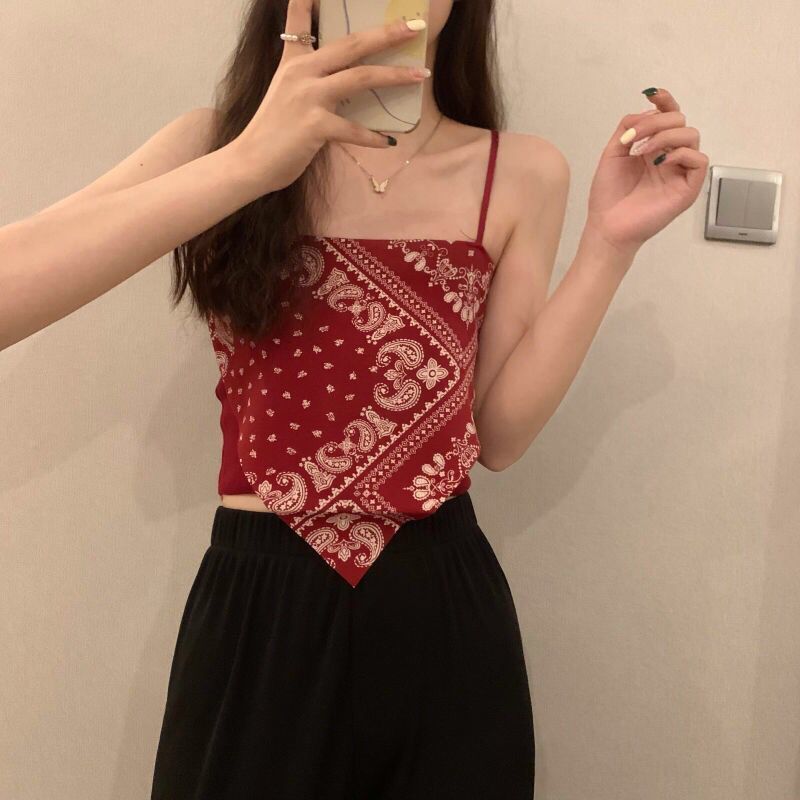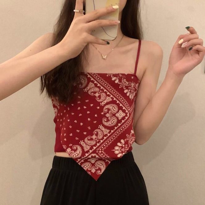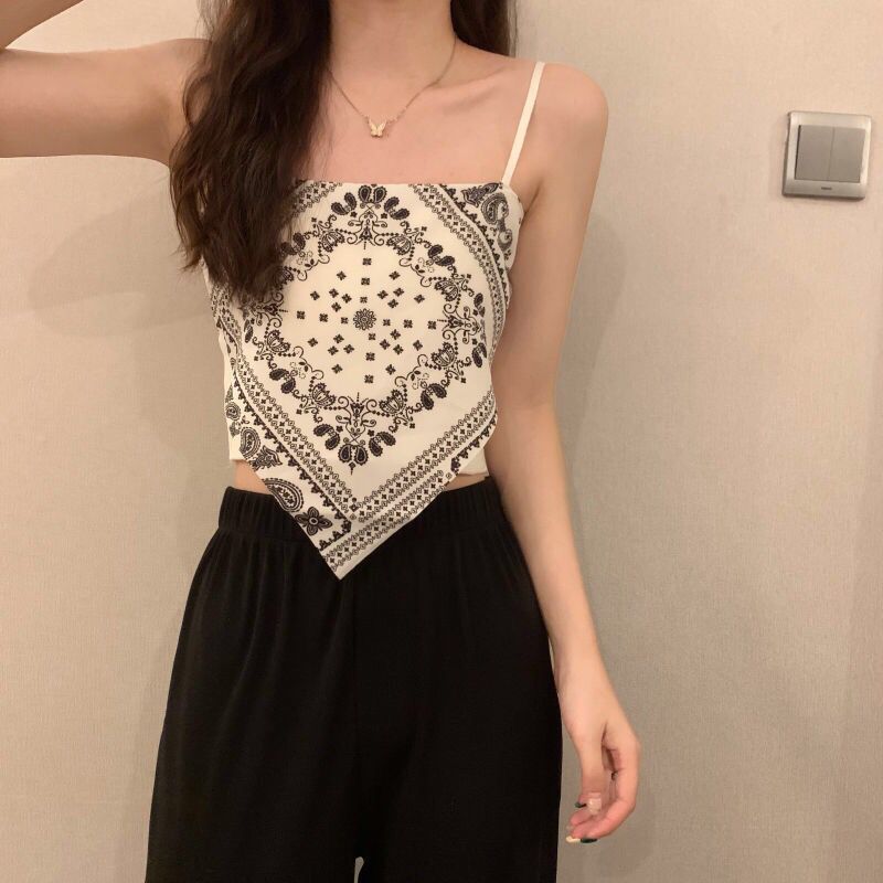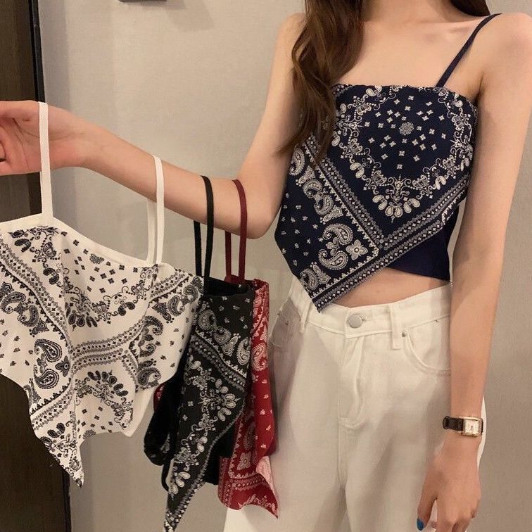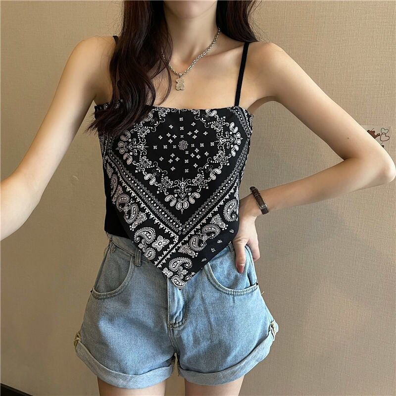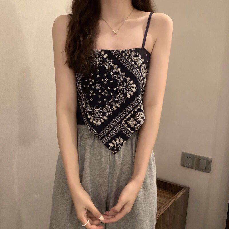 黛唯梵辣妹丝巾腰果花吊带背心2件优惠装女设计感小众内搭外穿炸街减龄时尚上衣服国庆清明出游