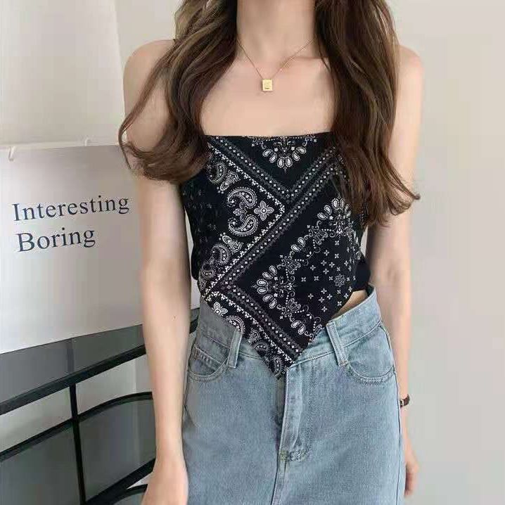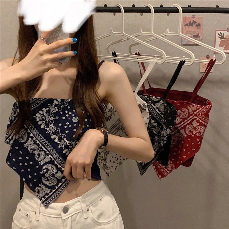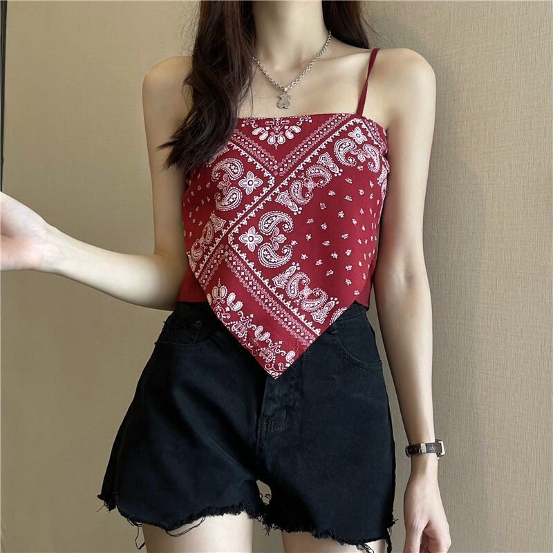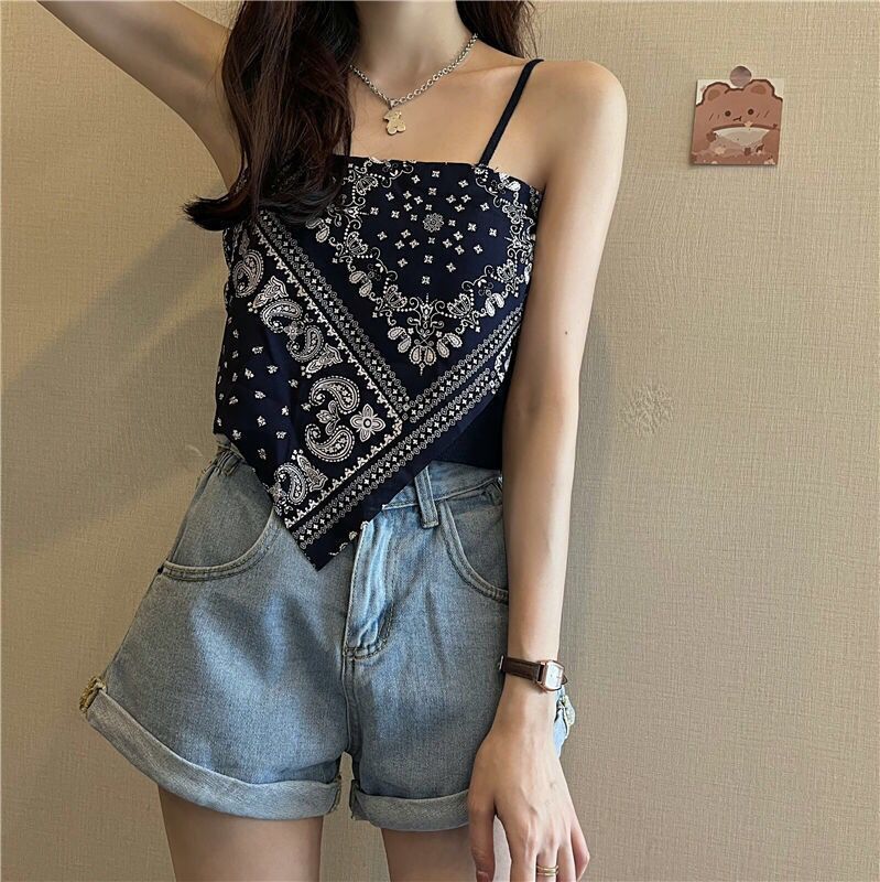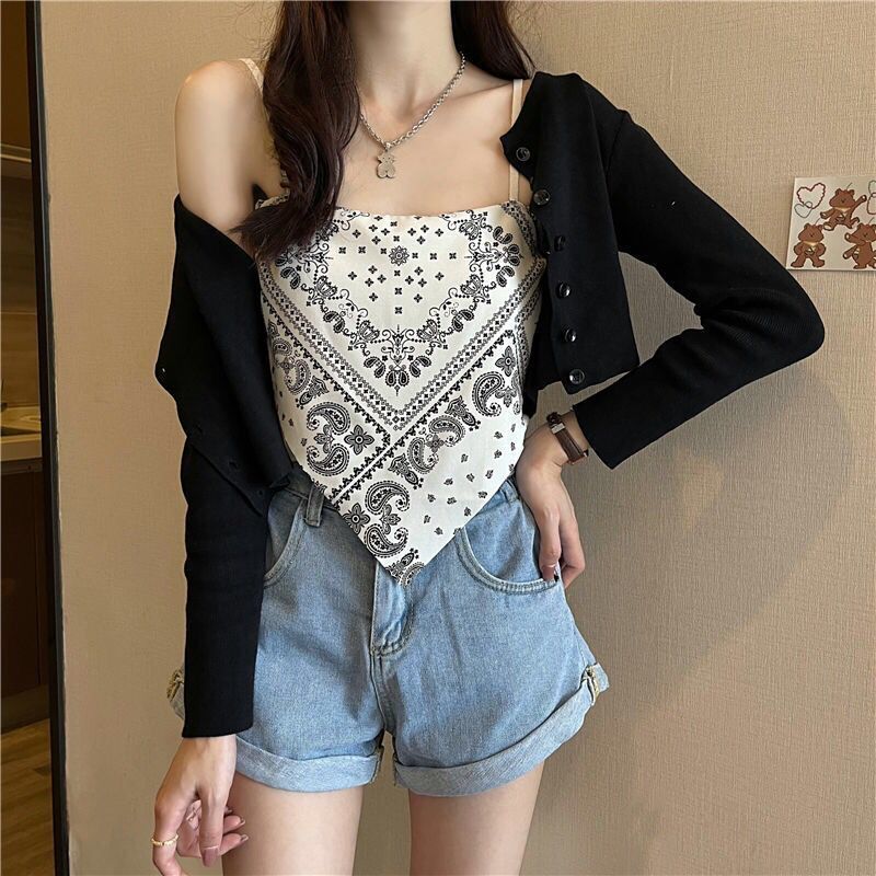黛唯梵辣妹丝巾腰果花吊带背心2件优惠装女设计感小众内搭外穿炸街减龄时尚上衣服国庆清明出游