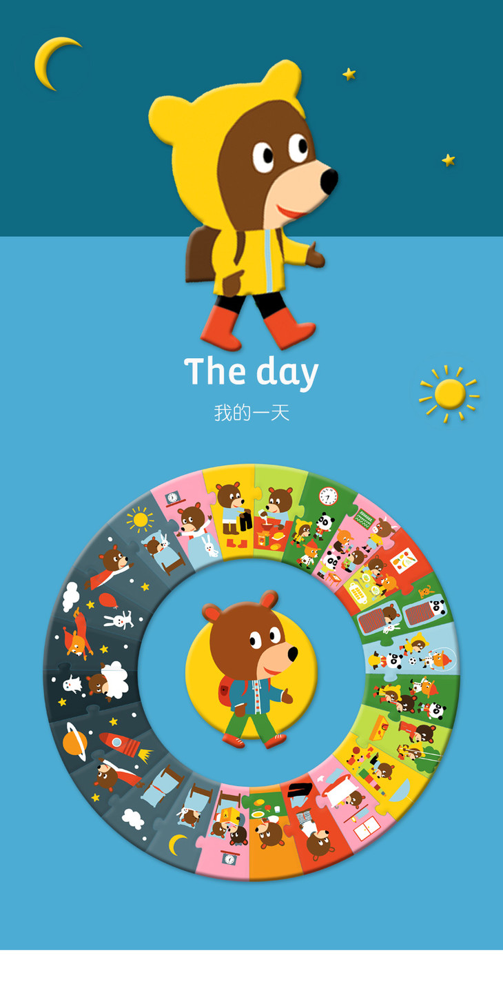 djeco圆形儿童简易拼图纸质大块 我的24小时 24片