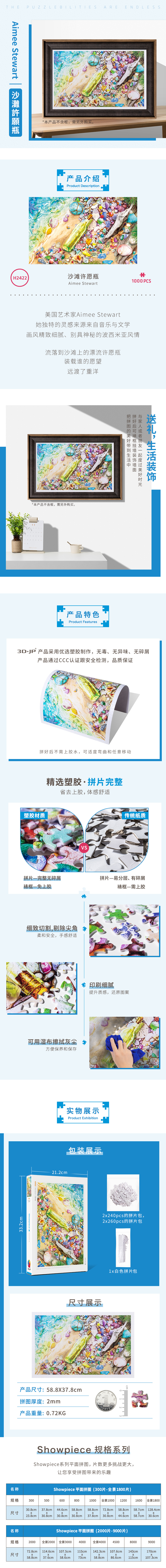 【折扣商品 不退不换】【折扣商品 不退不换】1000片平面拼图 塑料拼图 H2422 Aimee Stewart-沙滩许愿瓶
