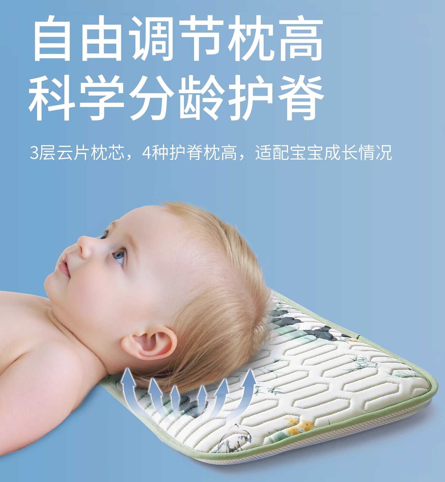 科巢婴儿枕头宝宝乳胶枕夏季冰丝透气6个月以上新生儿云片枕儿童