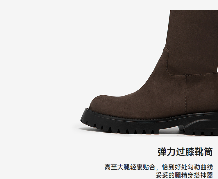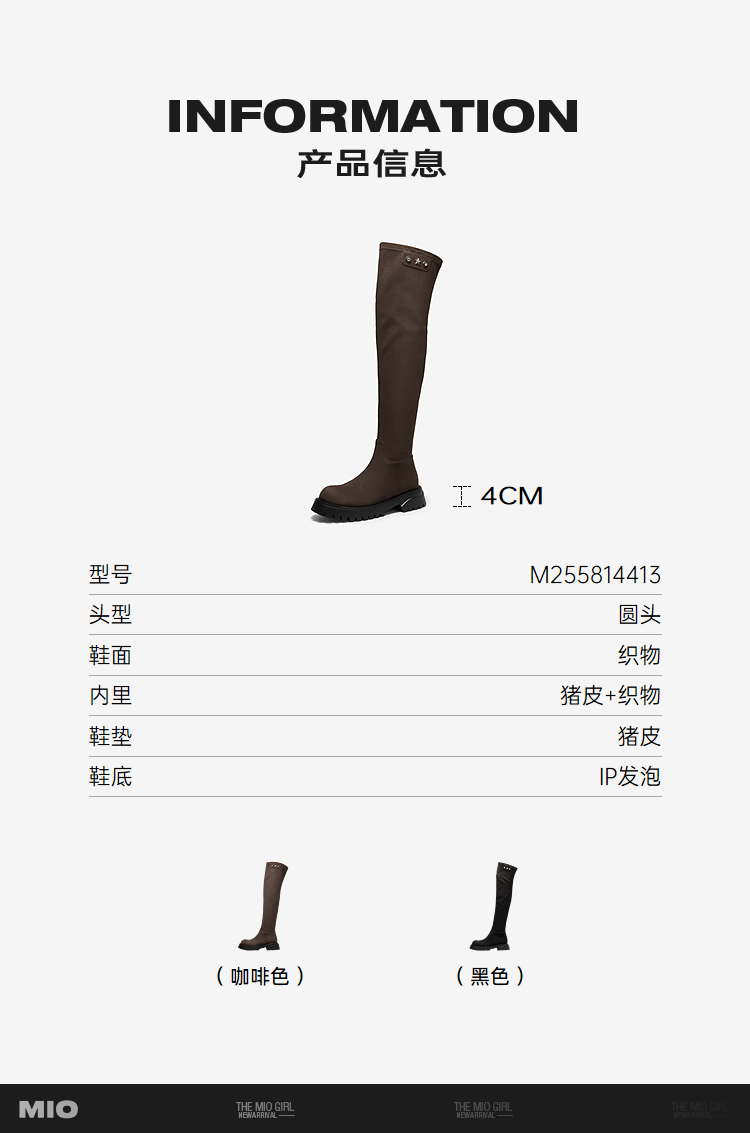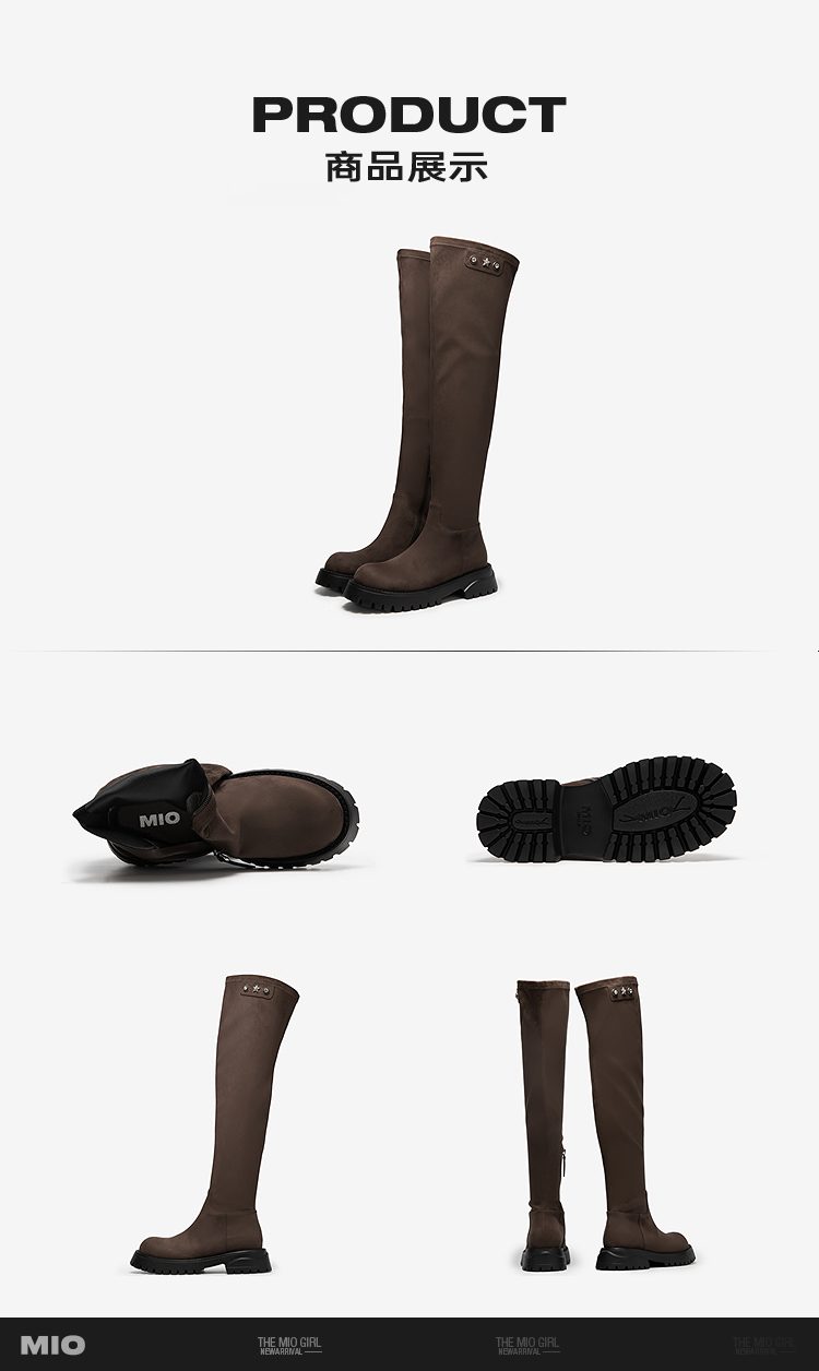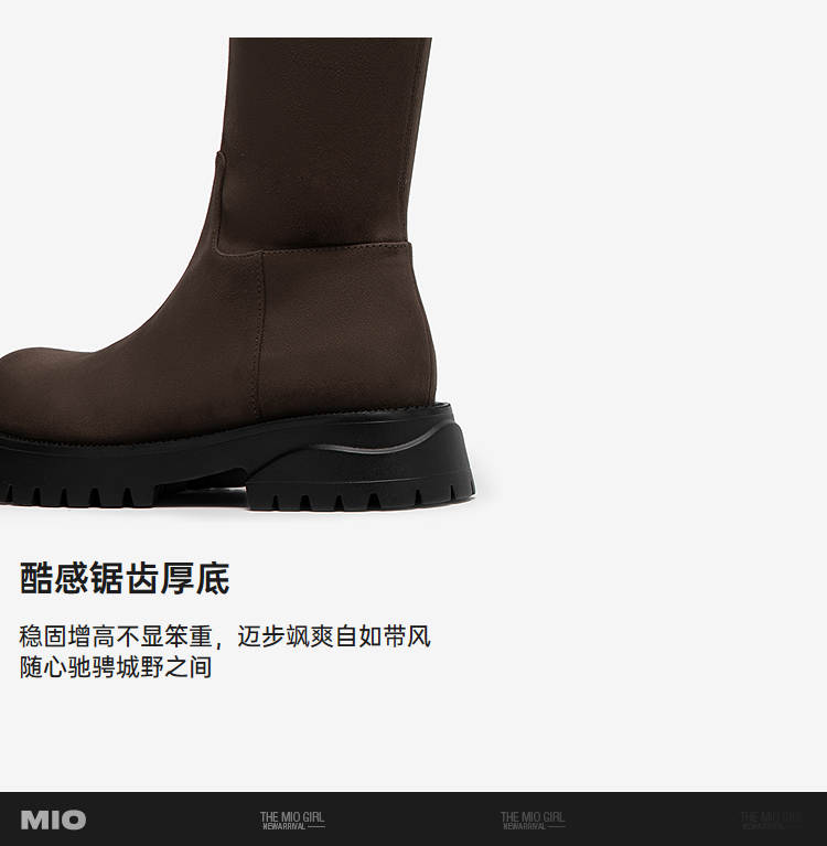 MIO米奥瘦瘦靴厚底圆头增高纯色弹力靴袜靴长筒靴女M255814413