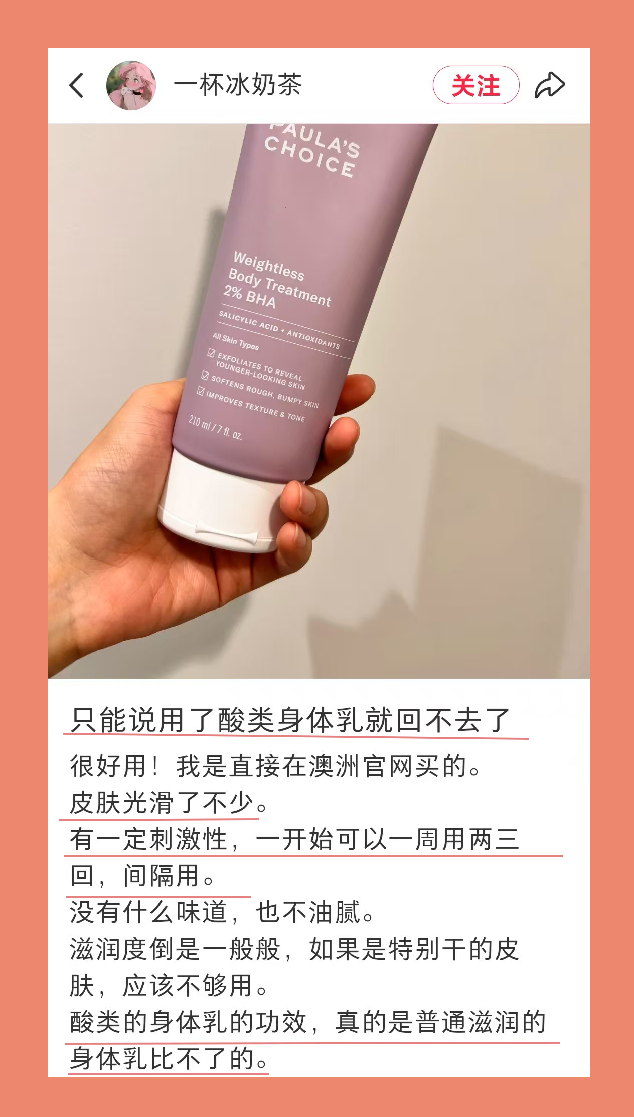 宝拉这款身体乳,刚擦的时候,