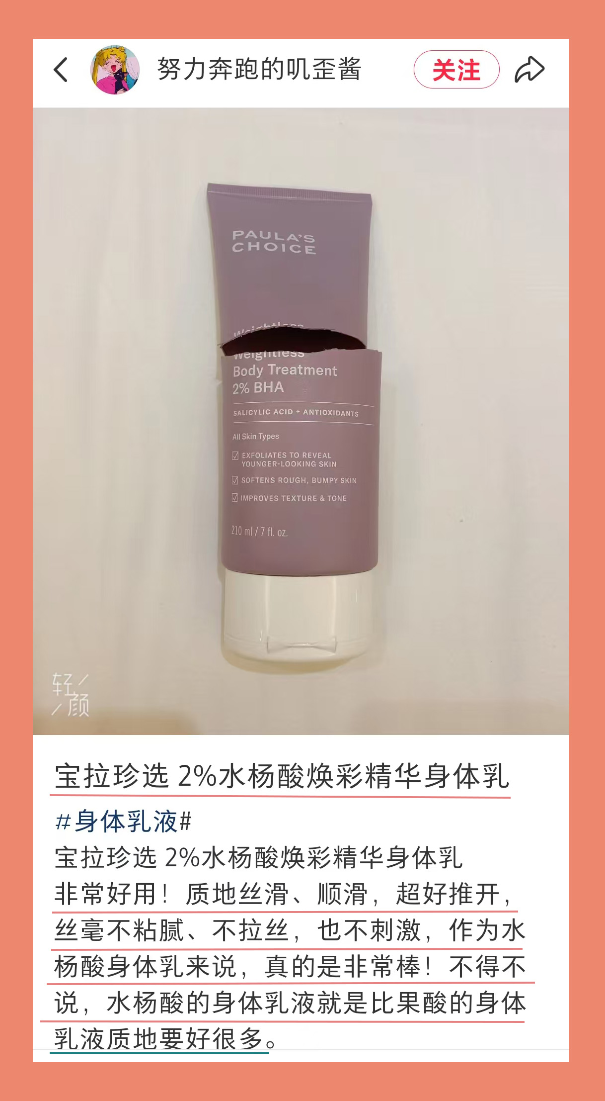 宝拉珍选2%水杨酸身体乳。