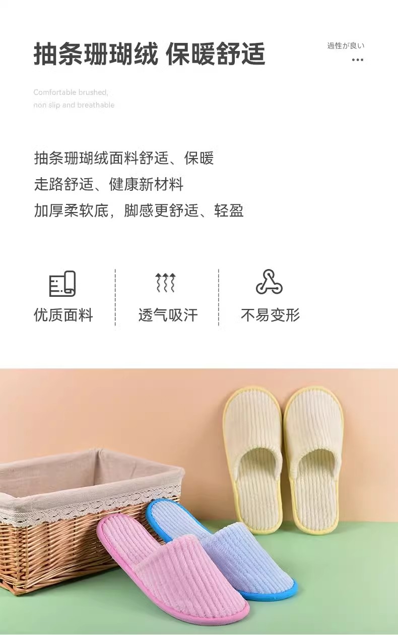 五星级酒店一次性珊瑚绒拖鞋美容院民宿家用防滑加厚待客拖鞋批发