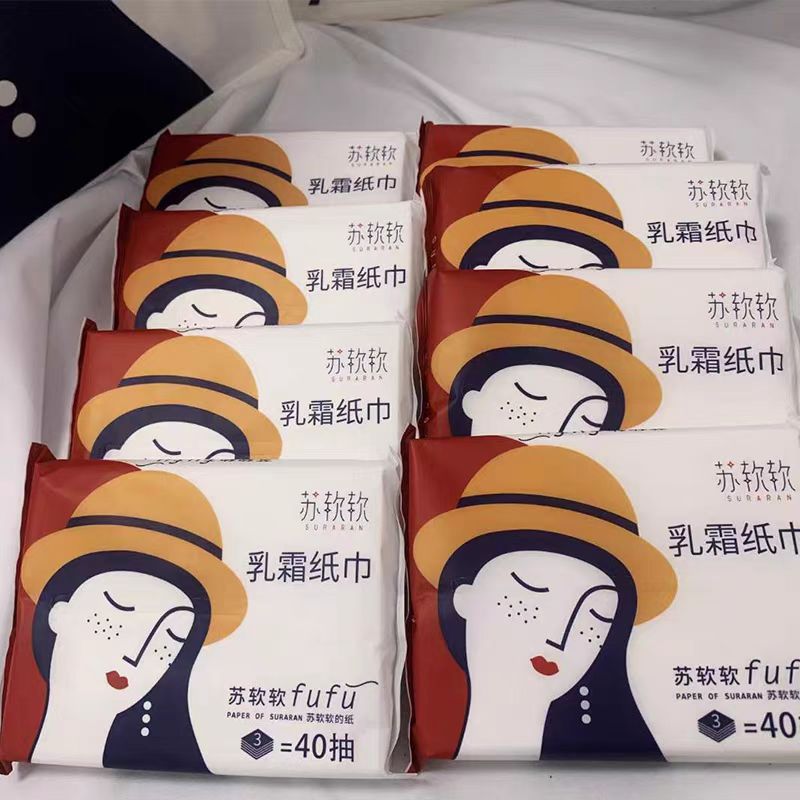 (8包装)苏软软乳霜纸巾婴儿保湿云柔抽纸便携小包乳霜纸