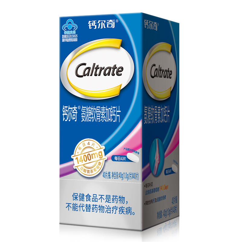 钙尔奇 氨糖软骨素钙片 钙片中老年 维骨力 补钙养护关节老年人营养品40粒/瓶