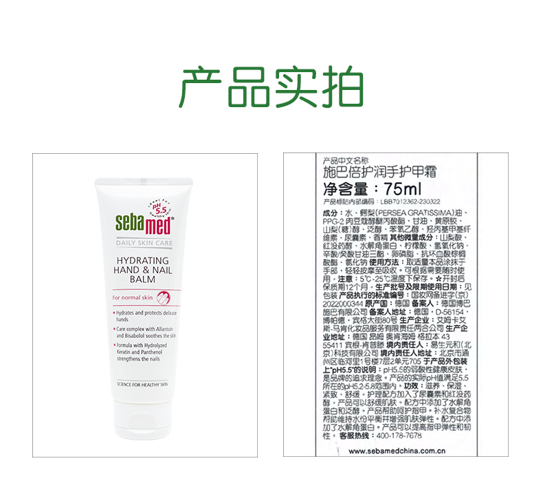 【品名】施巴倍护润手护甲霜75ml