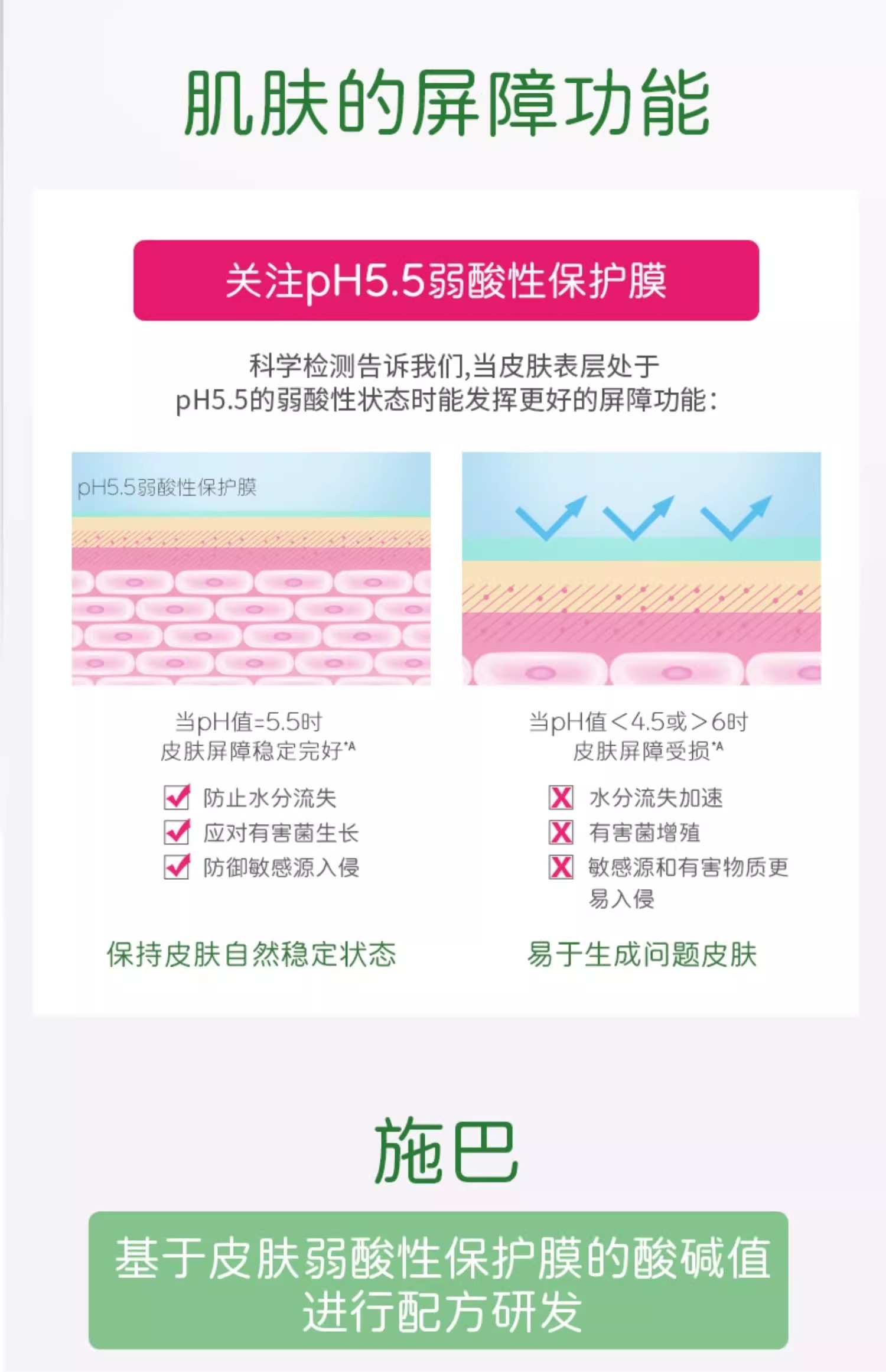 淡淡的香味,接近pH5.5的酸碱值,贴合健康皮肤表层,天然保护屏障,温和柔润。