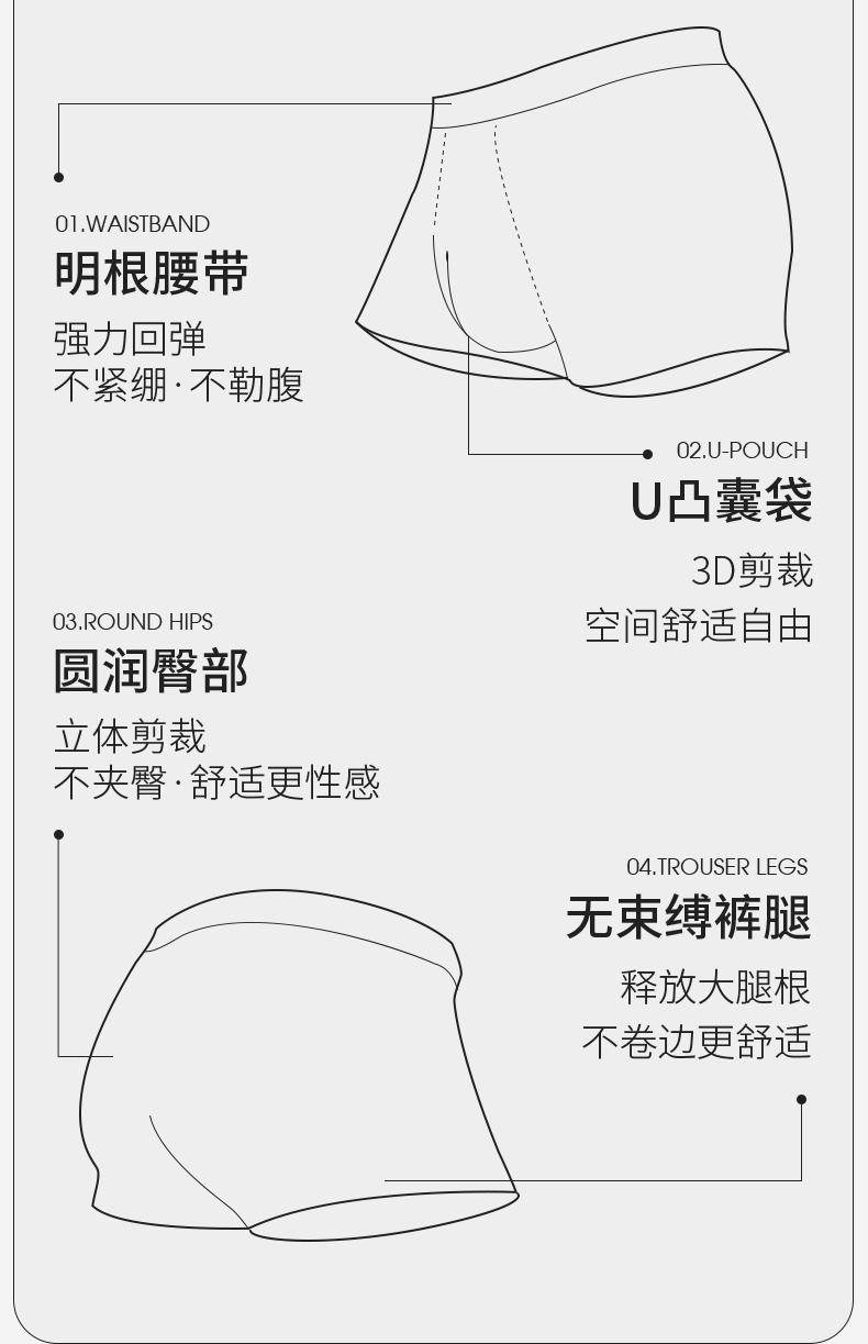 Threegun三枪 【冰丝】男士平角短裤四角内裤(1条装)-50747B031