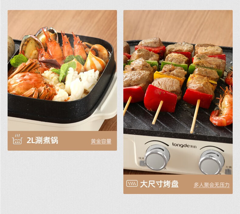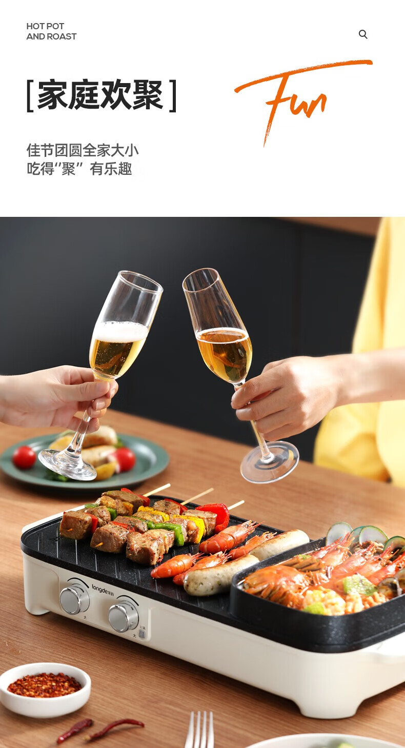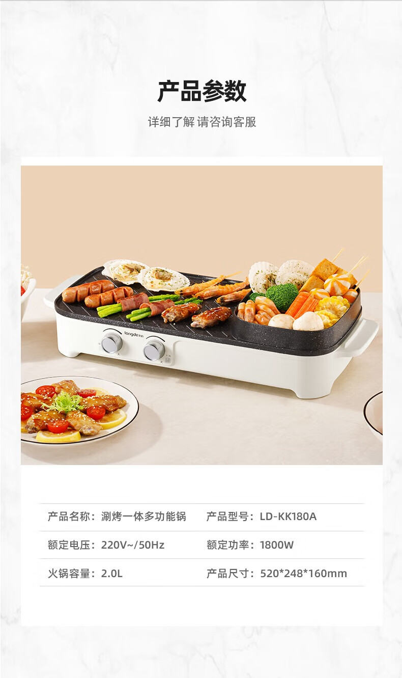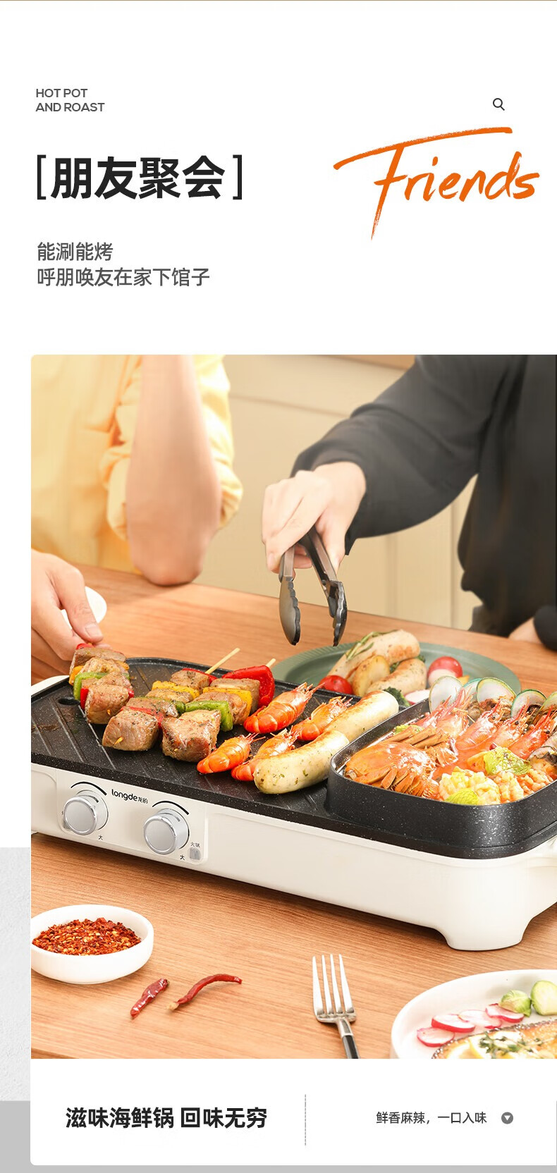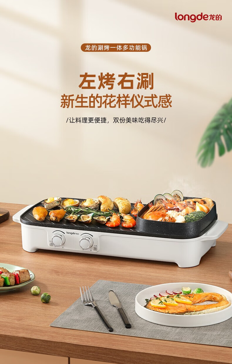 【小家电】龙的(longde)电烧烤炉 一锅多用家用电烤炉功率快速涮烤烤肉机分区控温电火锅 煎烤涮一体式 LD-KK180A HF