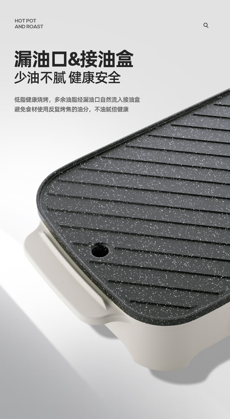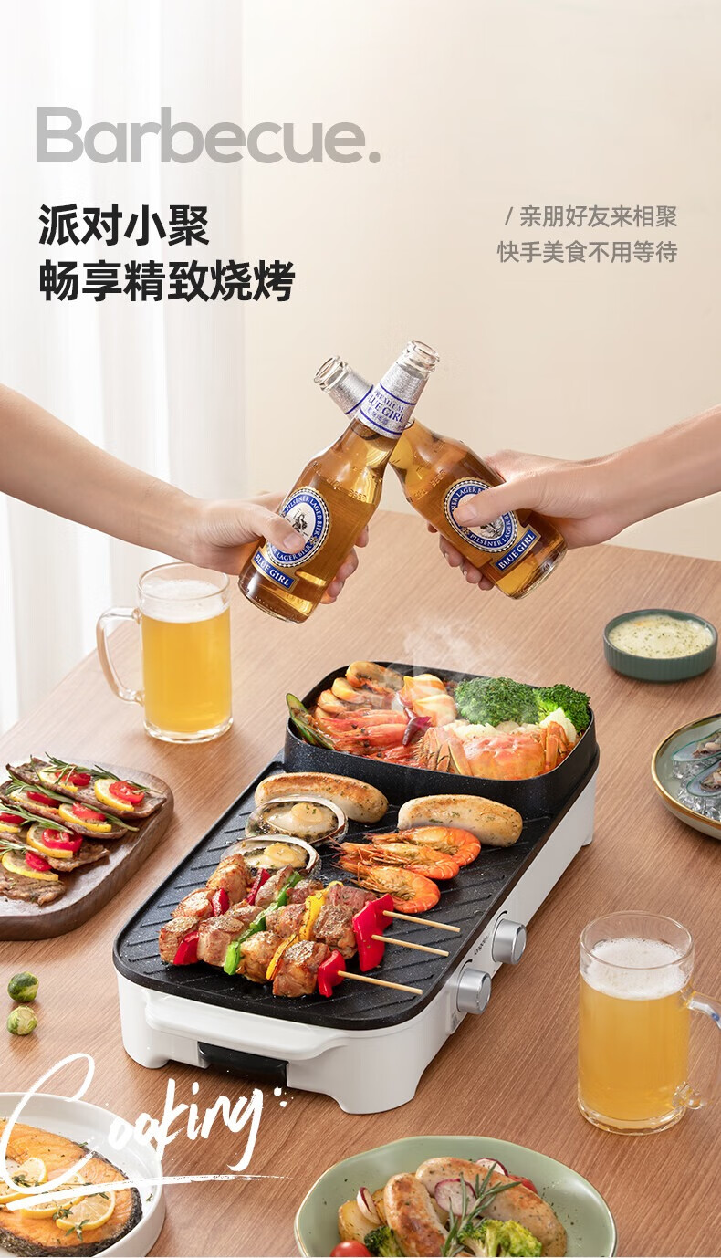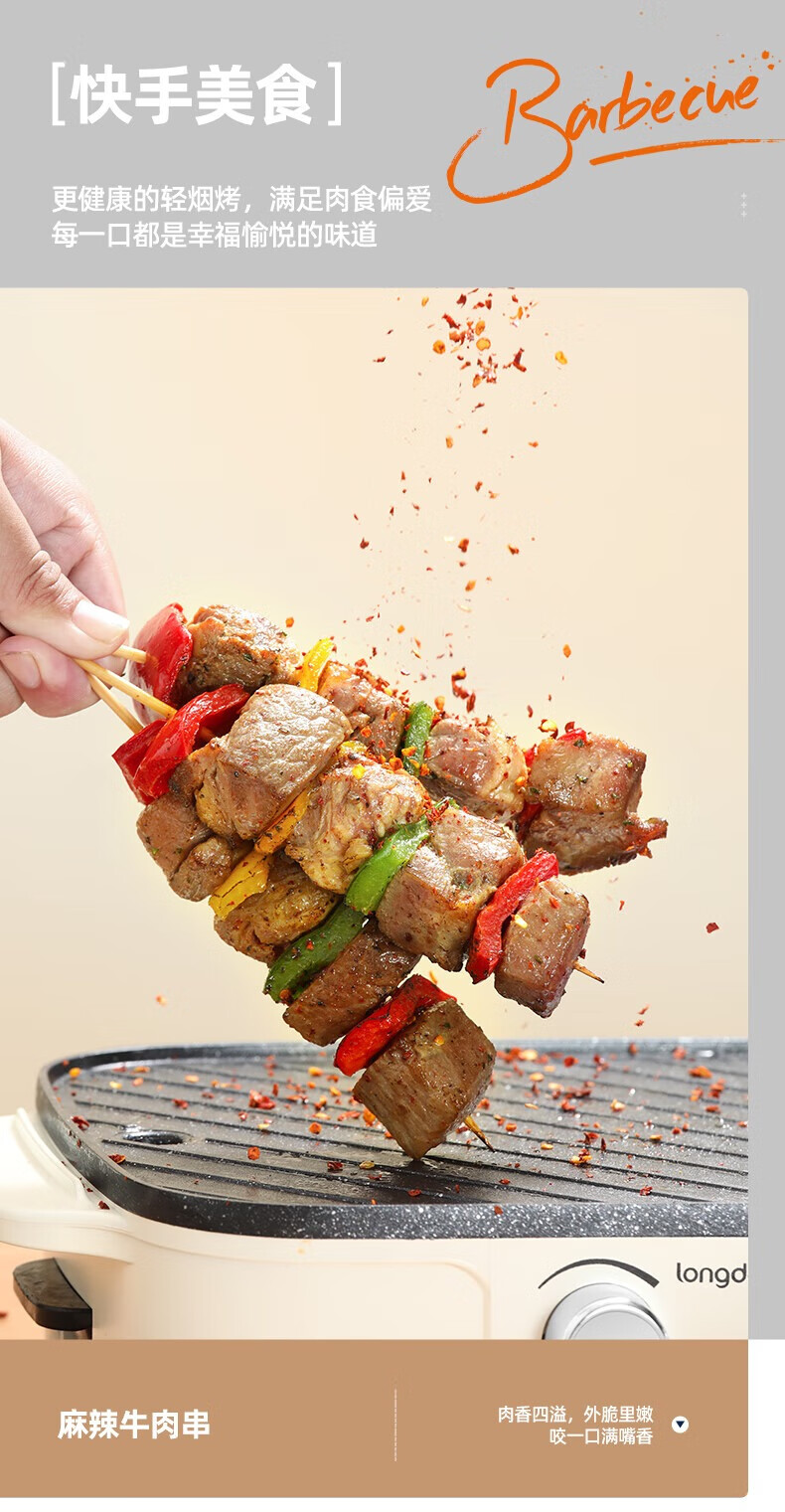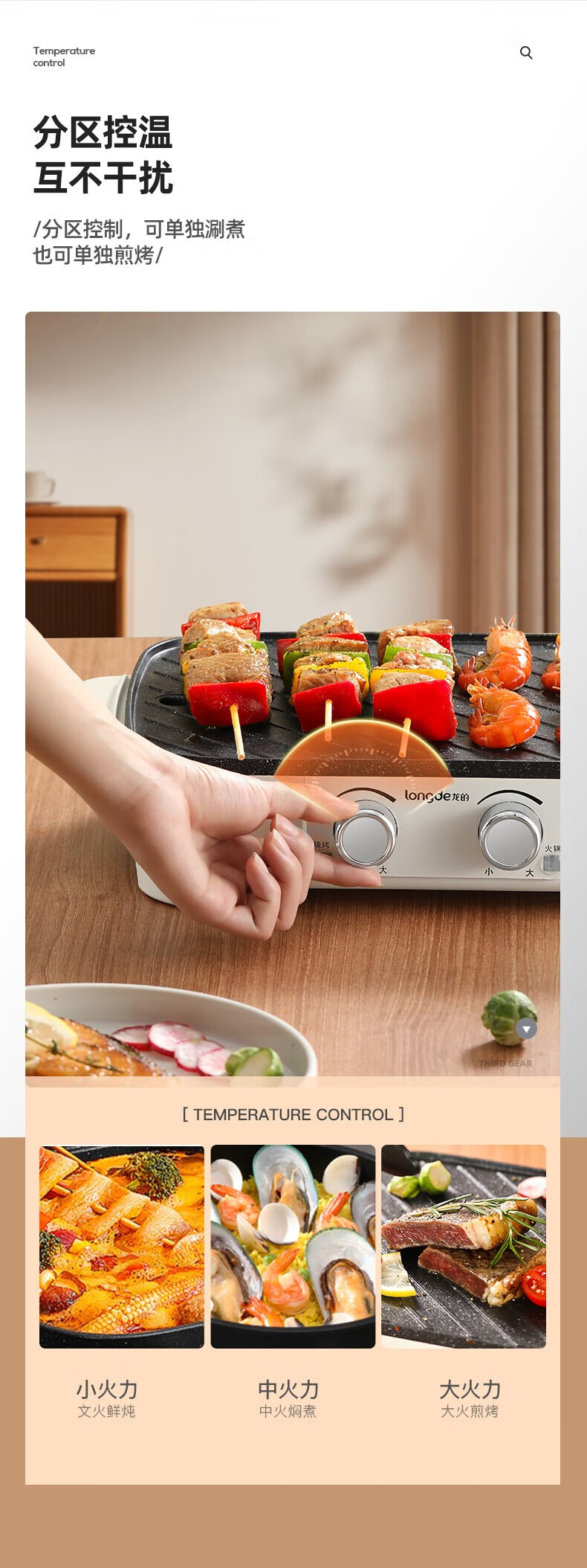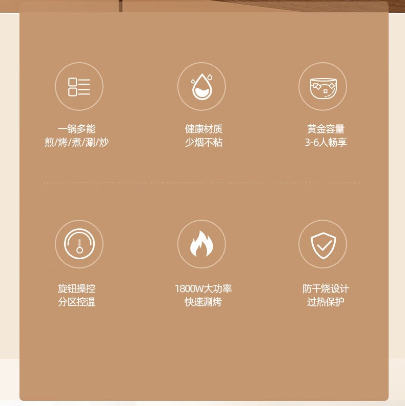 【小家电】龙的(longde)电烧烤炉 一锅多用家用电烤炉功率快速涮烤烤肉机分区控温电火锅 煎烤涮一体式 LD-KK180A HF