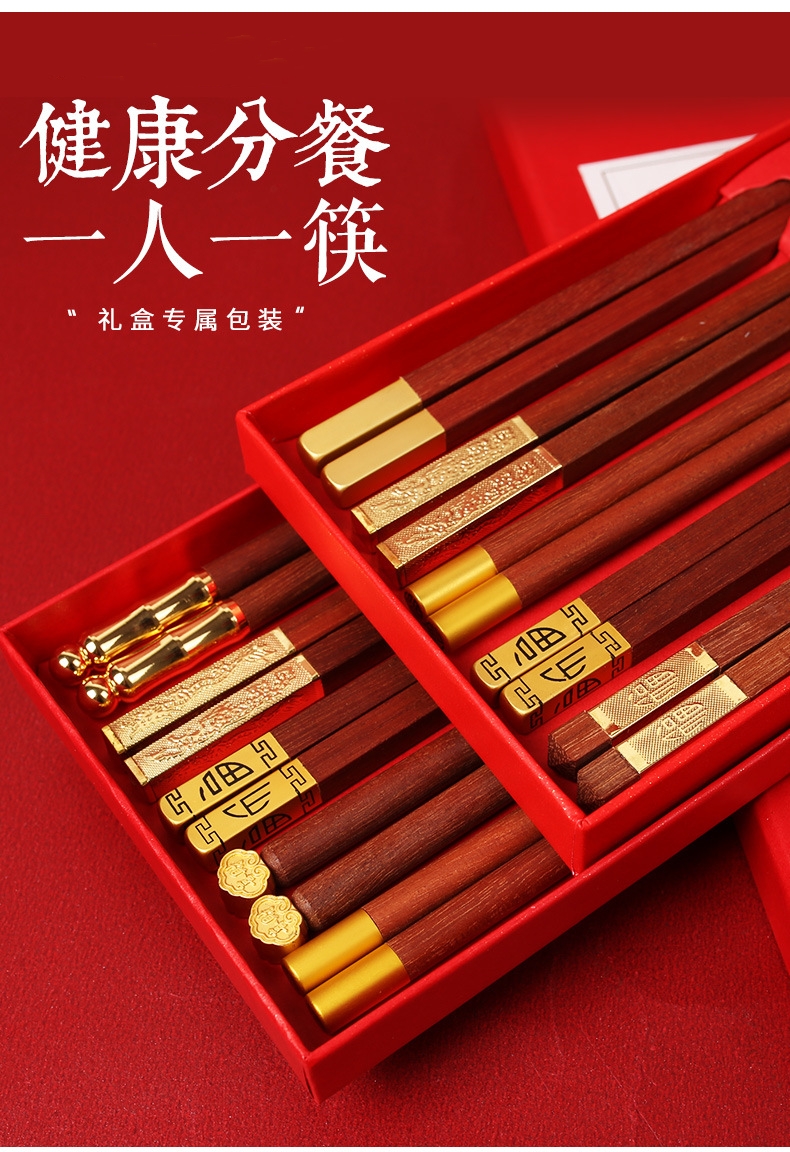【国潮家宴❗️红檀木分餐筷子礼盒】新年开运,动动筷子,五福临门,大吉大利❗️家用实木鸡翅木筷套装新年礼盒年货礼盒