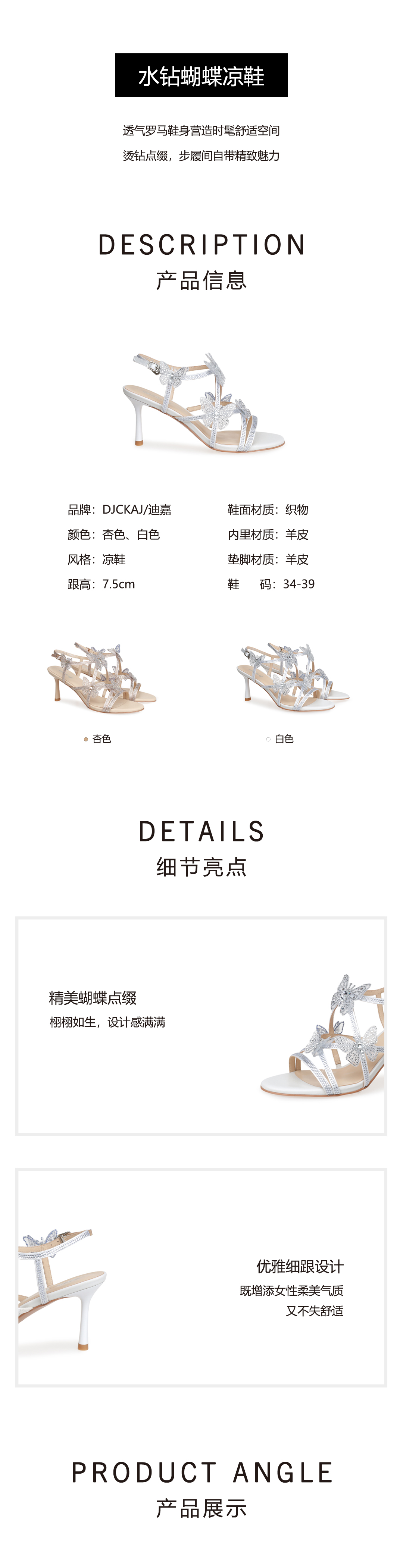 豪麟名鞋迪嘉女鞋凉鞋织物DJMPA51WL016杏色