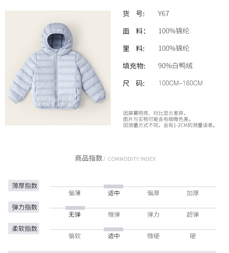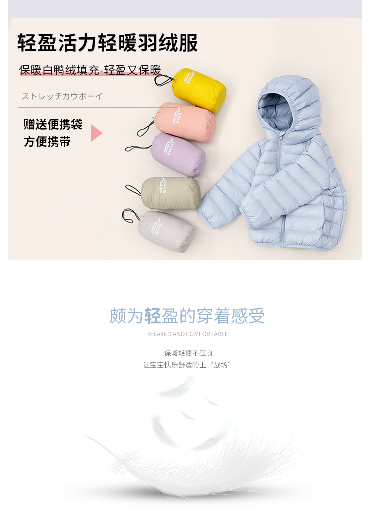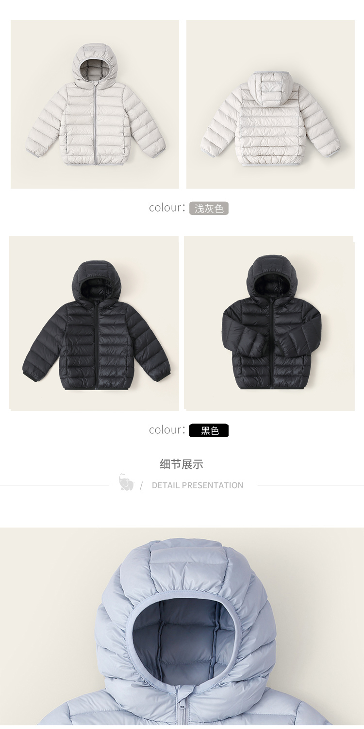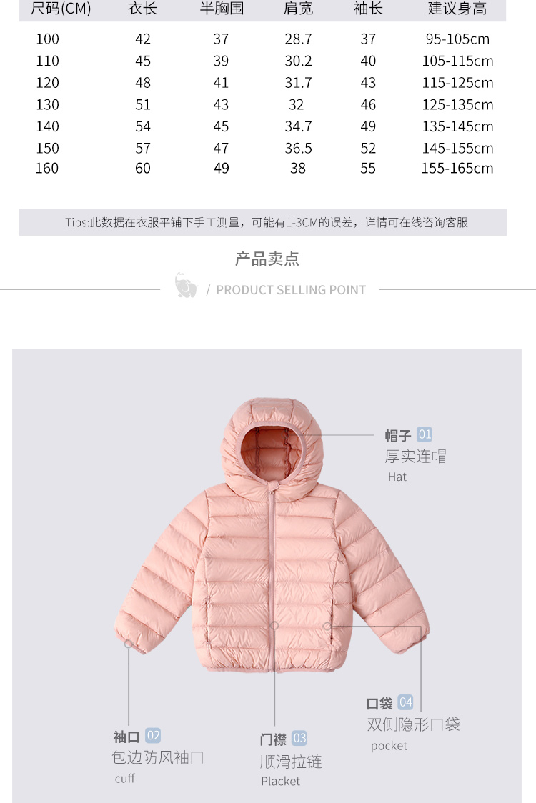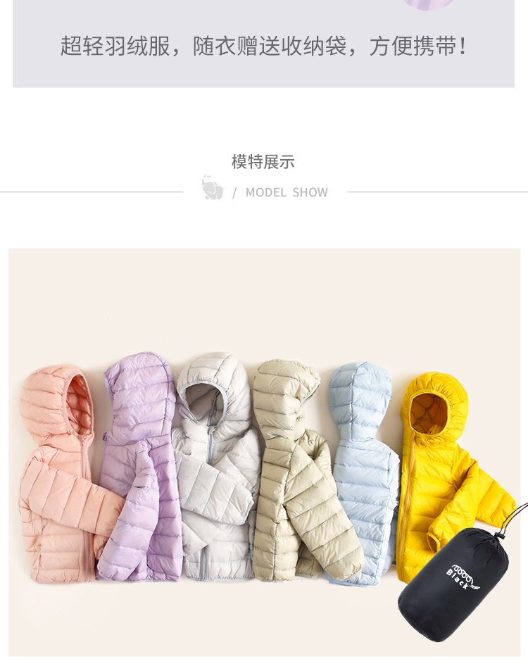 胖胖象糖果色轻薄羽绒服100-160码连帽羽绒服聚