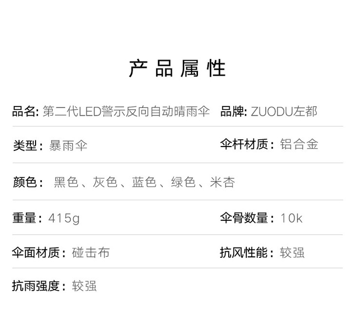 左都·第二代LED反向自动晴雨伞,自带照明,在每个雨夜为你“抗风雨”【G】