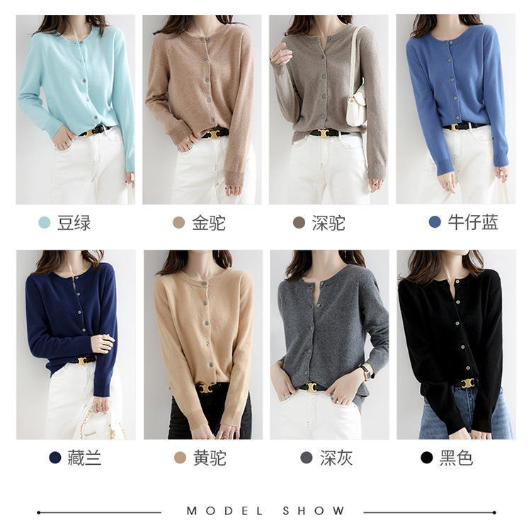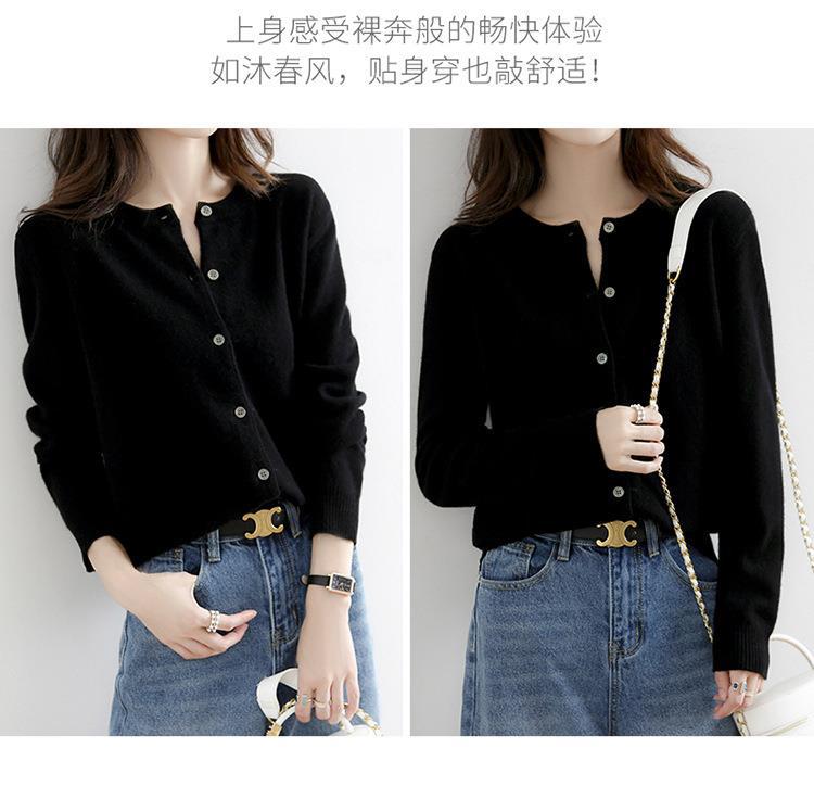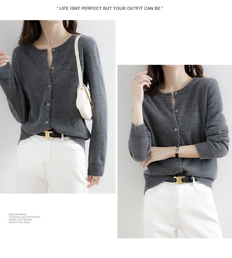 亲肤柔软 内搭外穿 软糯圆领针织开衫女宽松纯色外套女秋季新款外搭长袖上衣新款新品