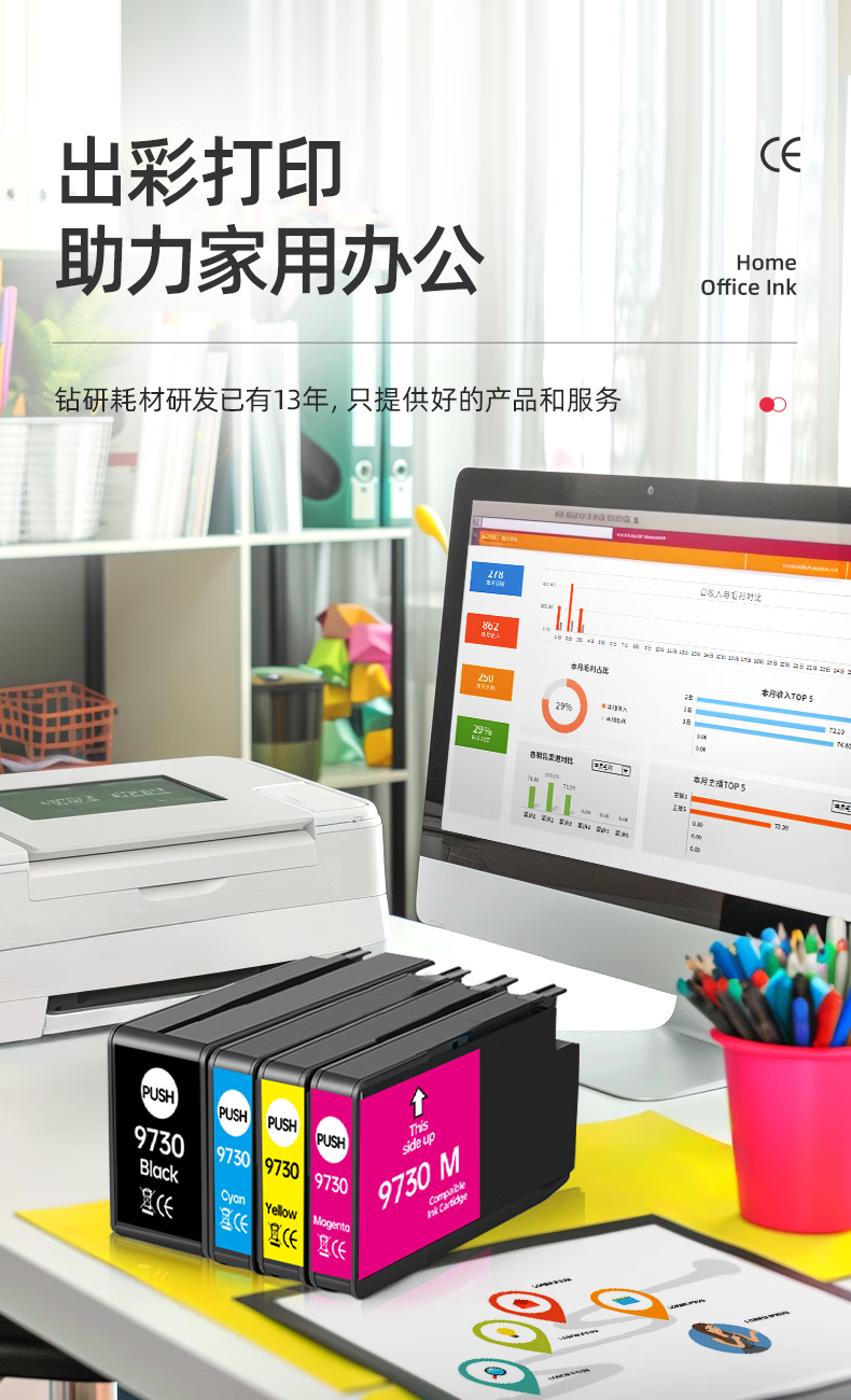绘威938墨盒 适用惠普HP OfficeJet Pro 9720 9730打印机墨盒9110b 9120 9130墨水 938XL墨盒 四色套装