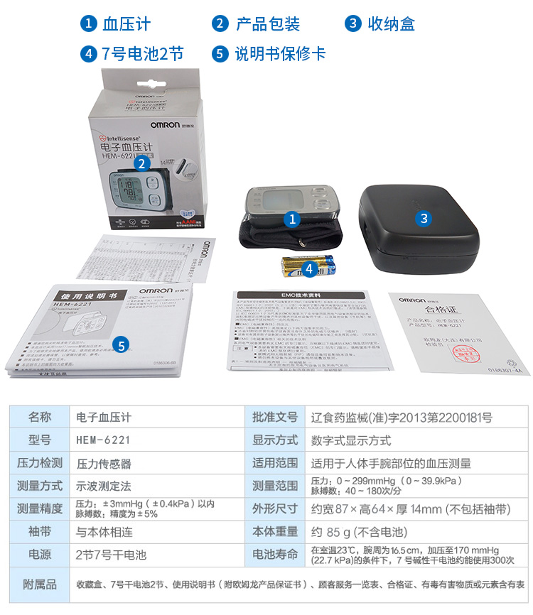 欧姆龙(OMRON)HEM-6221手腕式全自动血压计 HEM-6221