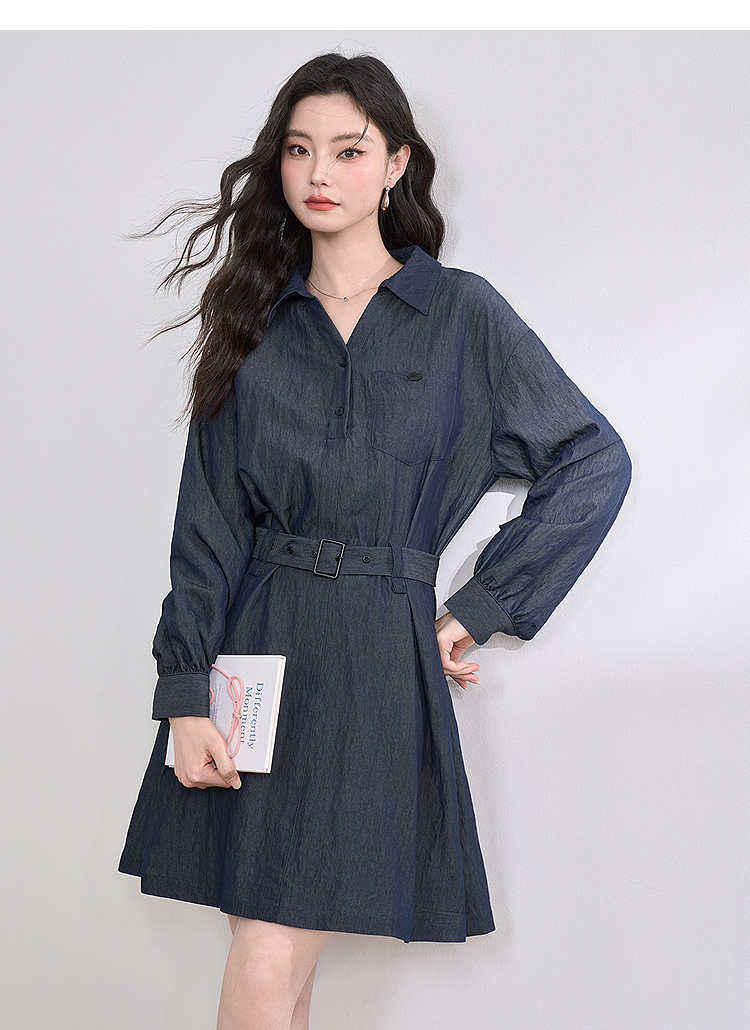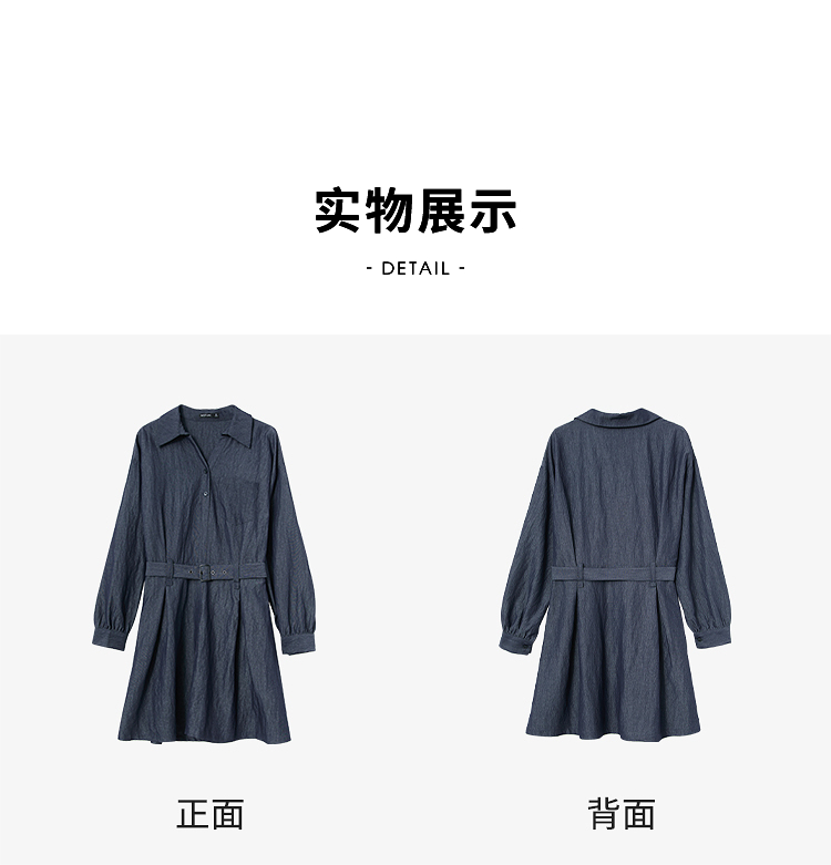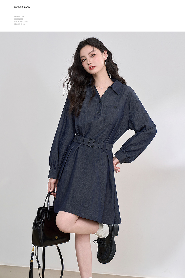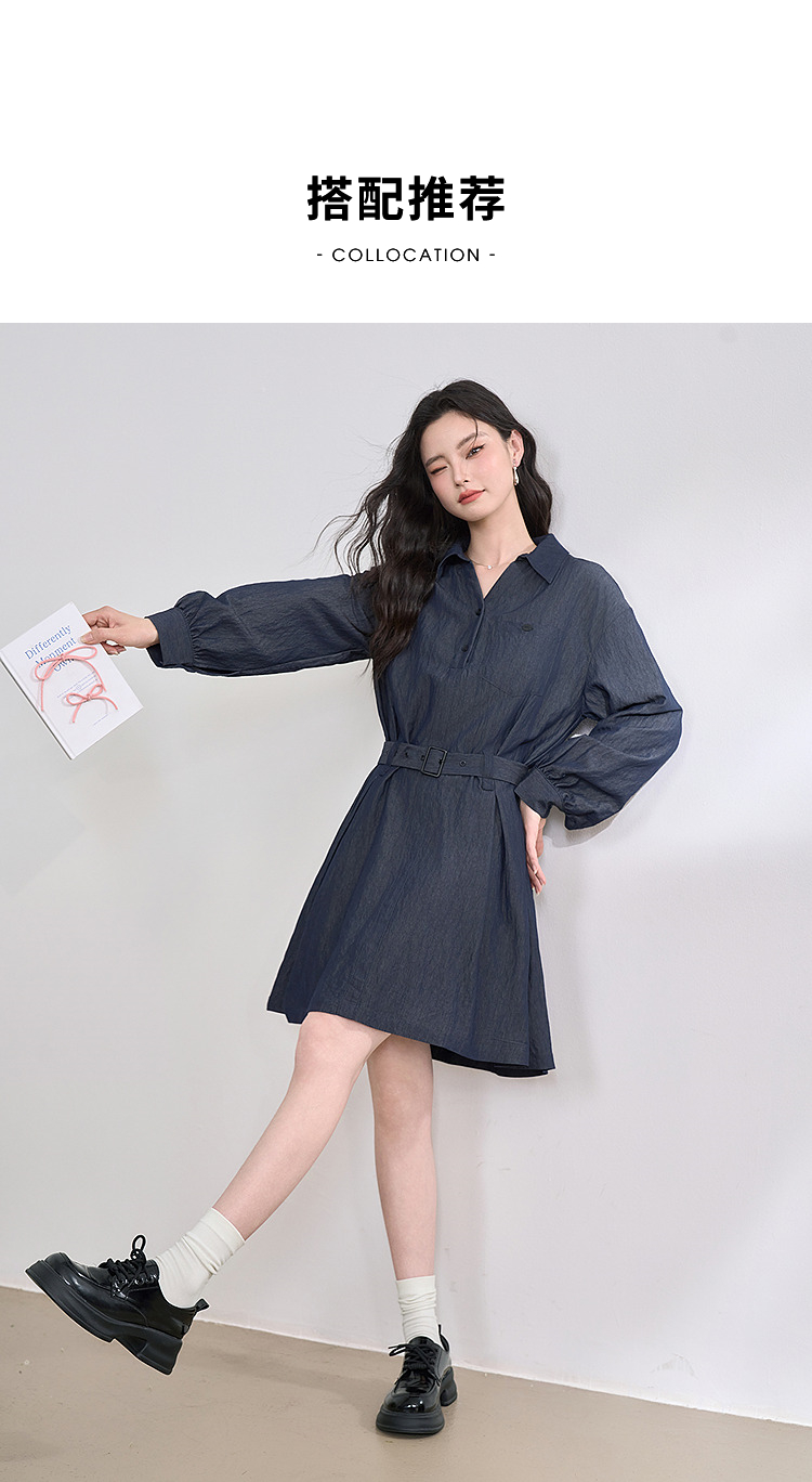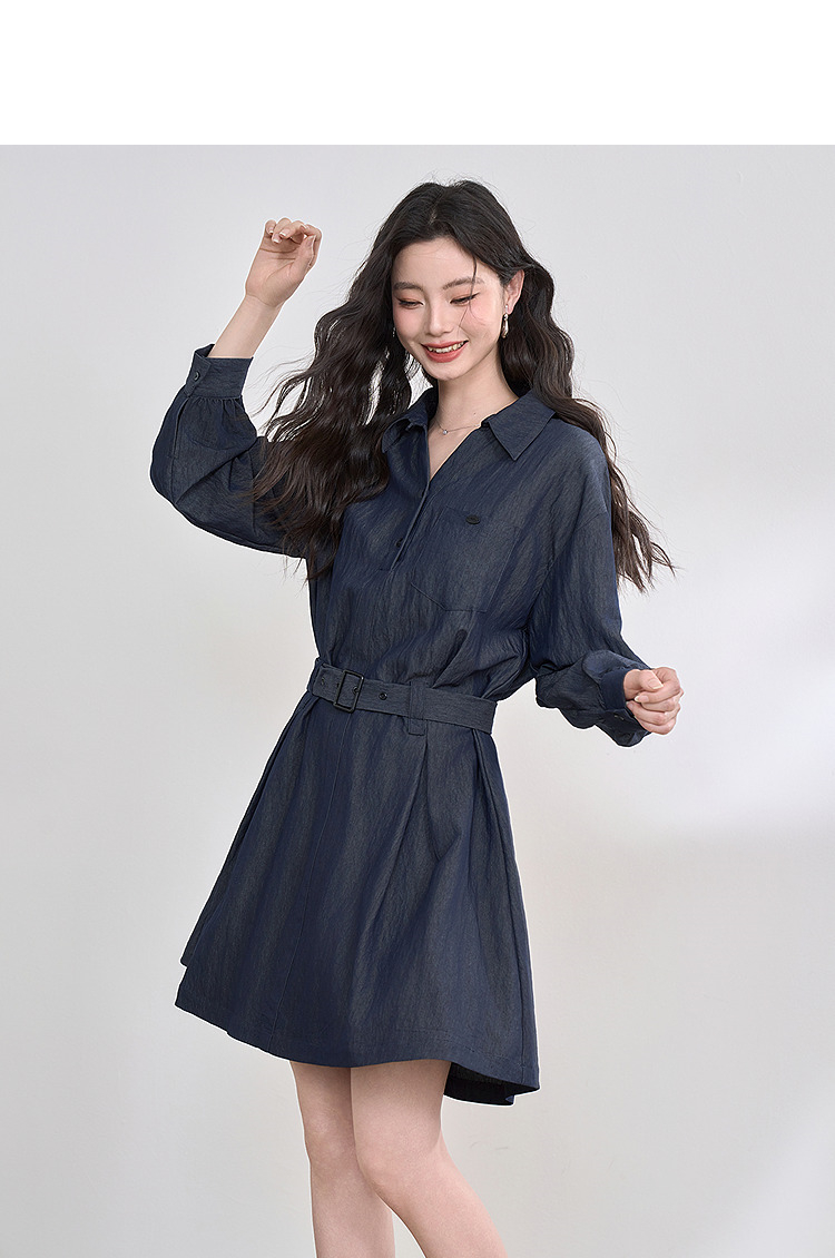 韩系复古高级感通勤气质衬衫裙女长袖连衣裙配腰带V0250139