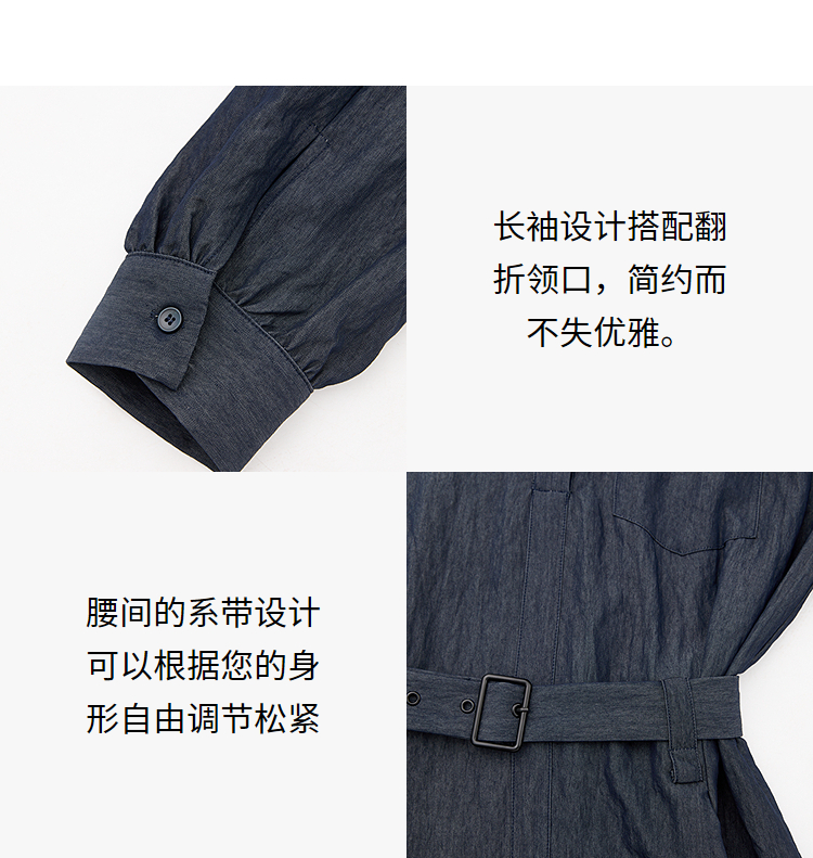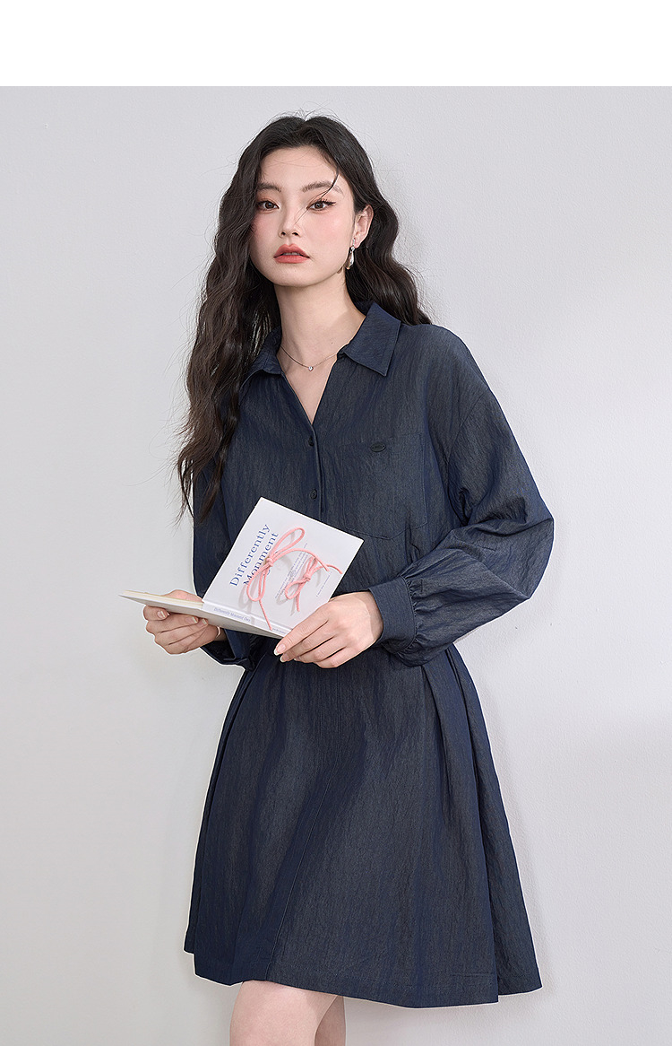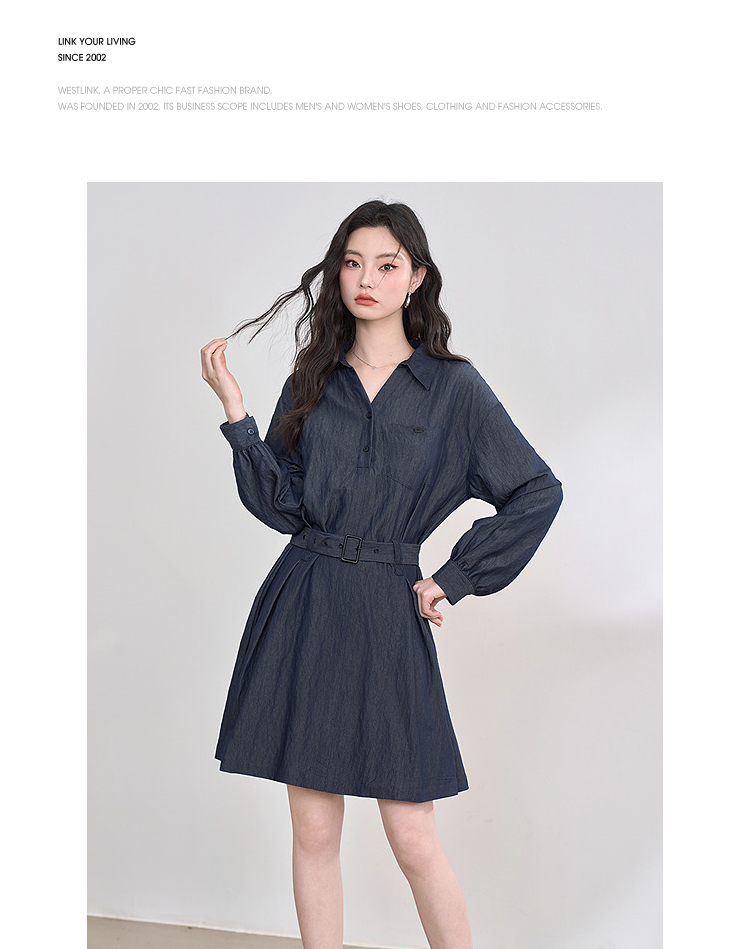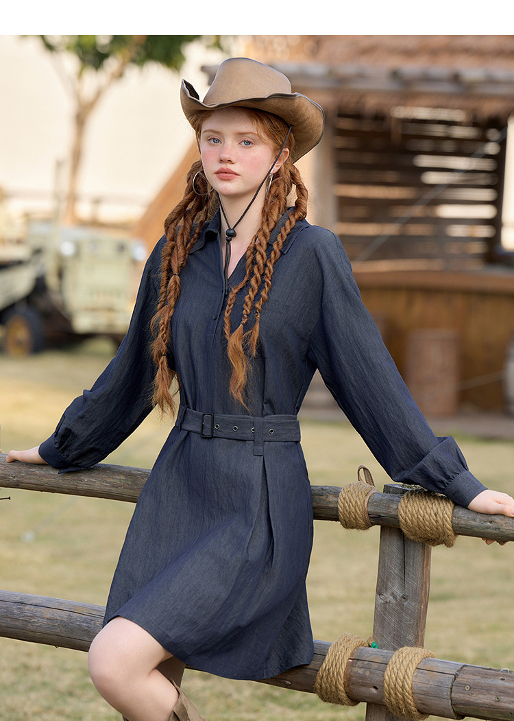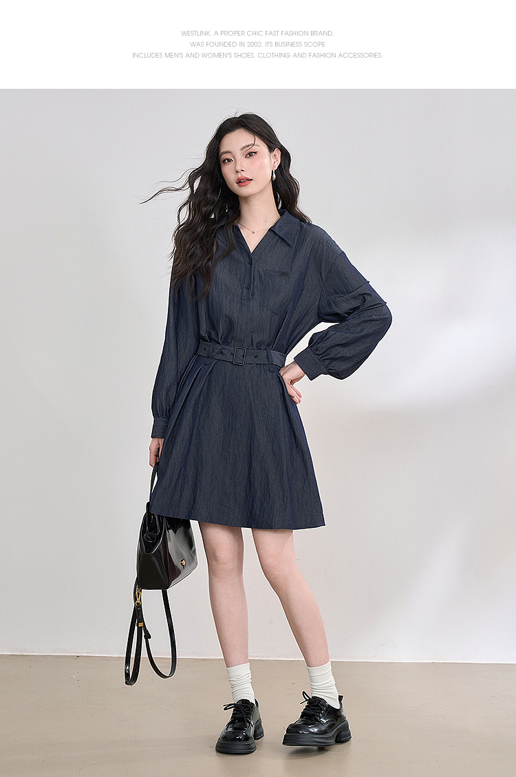 韩系复古高级感通勤气质衬衫裙女长袖连衣裙配腰带V0250139