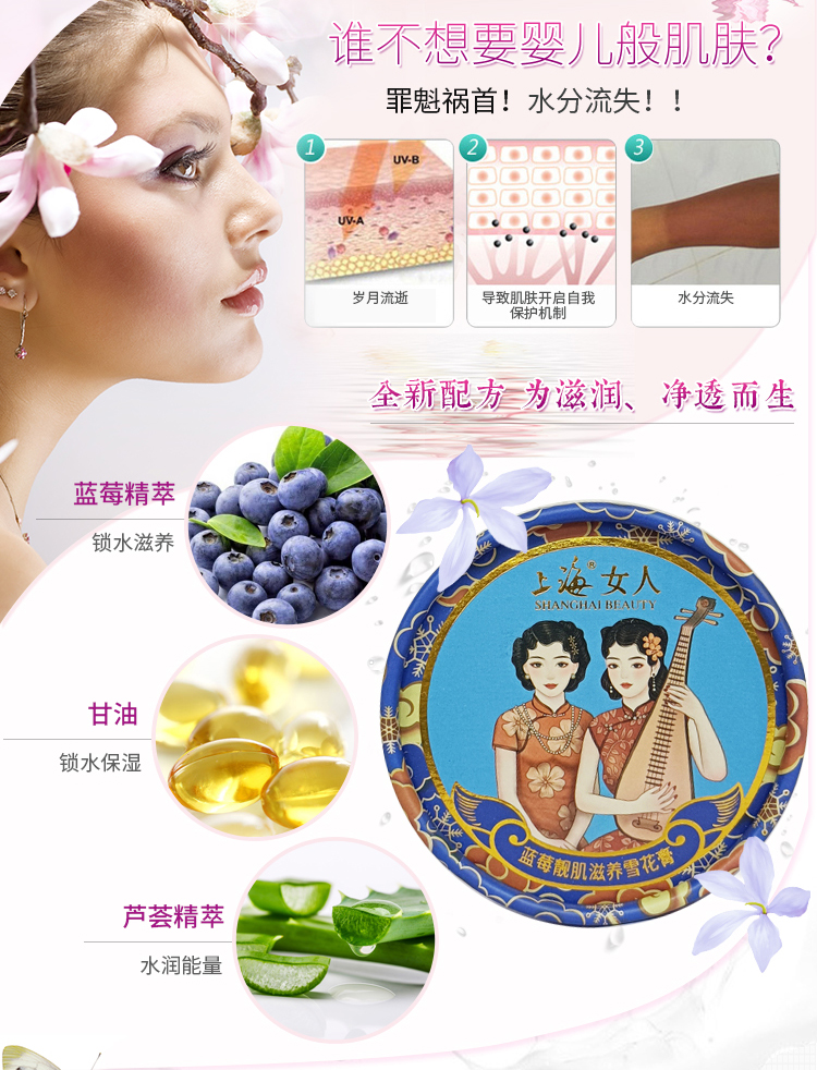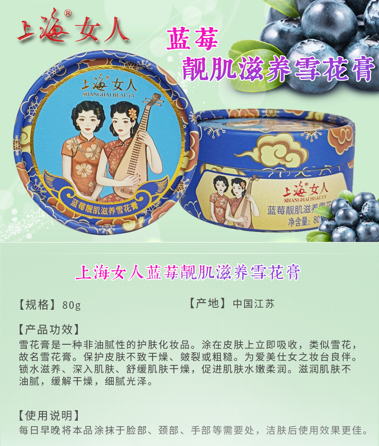 临期特价*26年3月*上海女人蓝莓靓肌滋养雪花膏80g