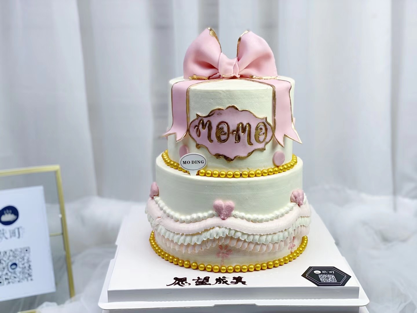 双层翻糖蝴蝶结(糖牌英文可改(4字内))