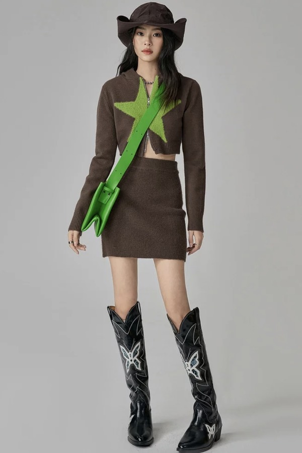 EPTISON/衣品天成 修身短款开衫外套短裙两件套 18978