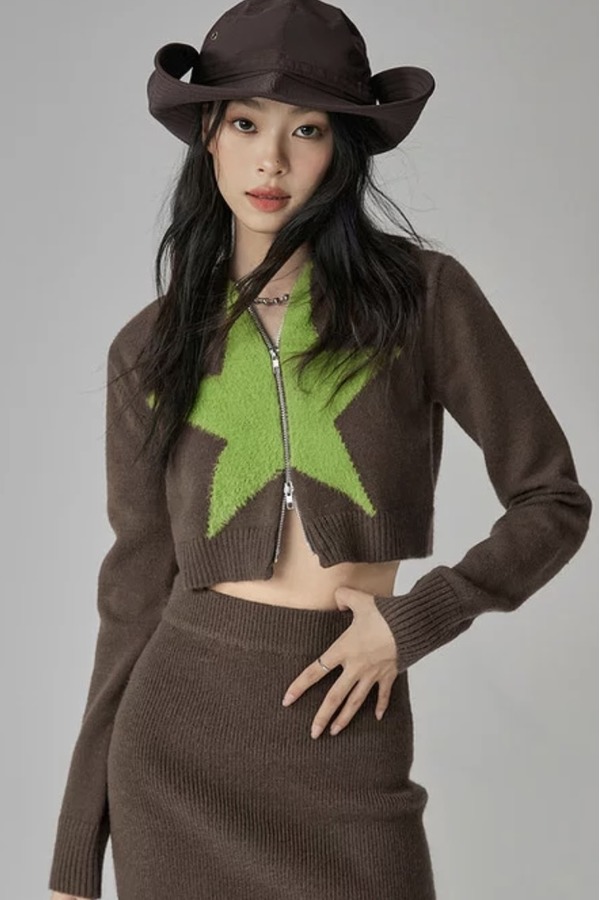 LNNNS 绿色格纹背心开衫两件套 17812