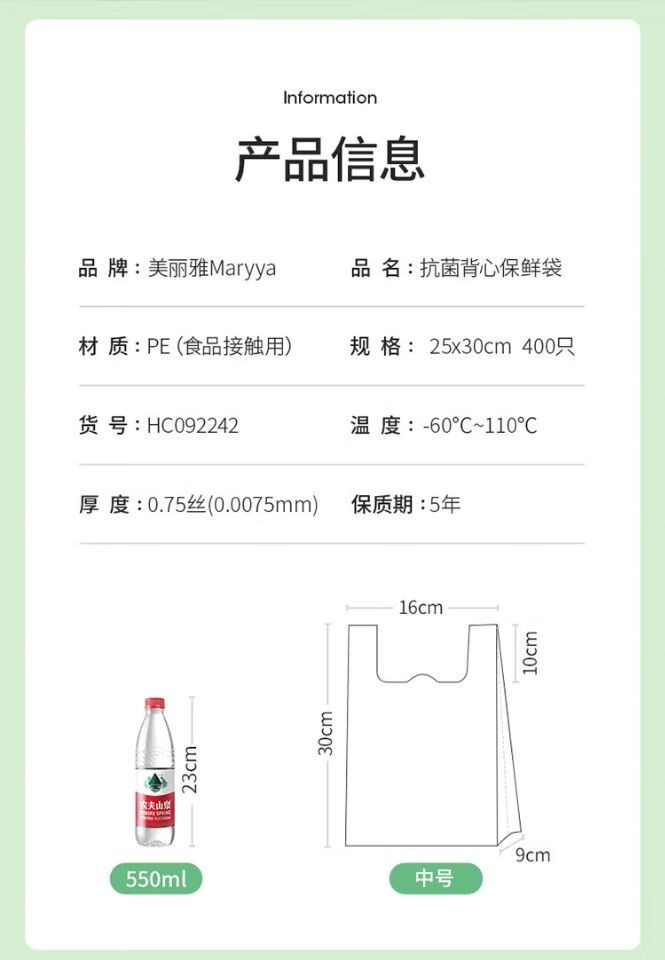 美丽雅抗菌连卷背心式保鲜袋25*30厘米*400只